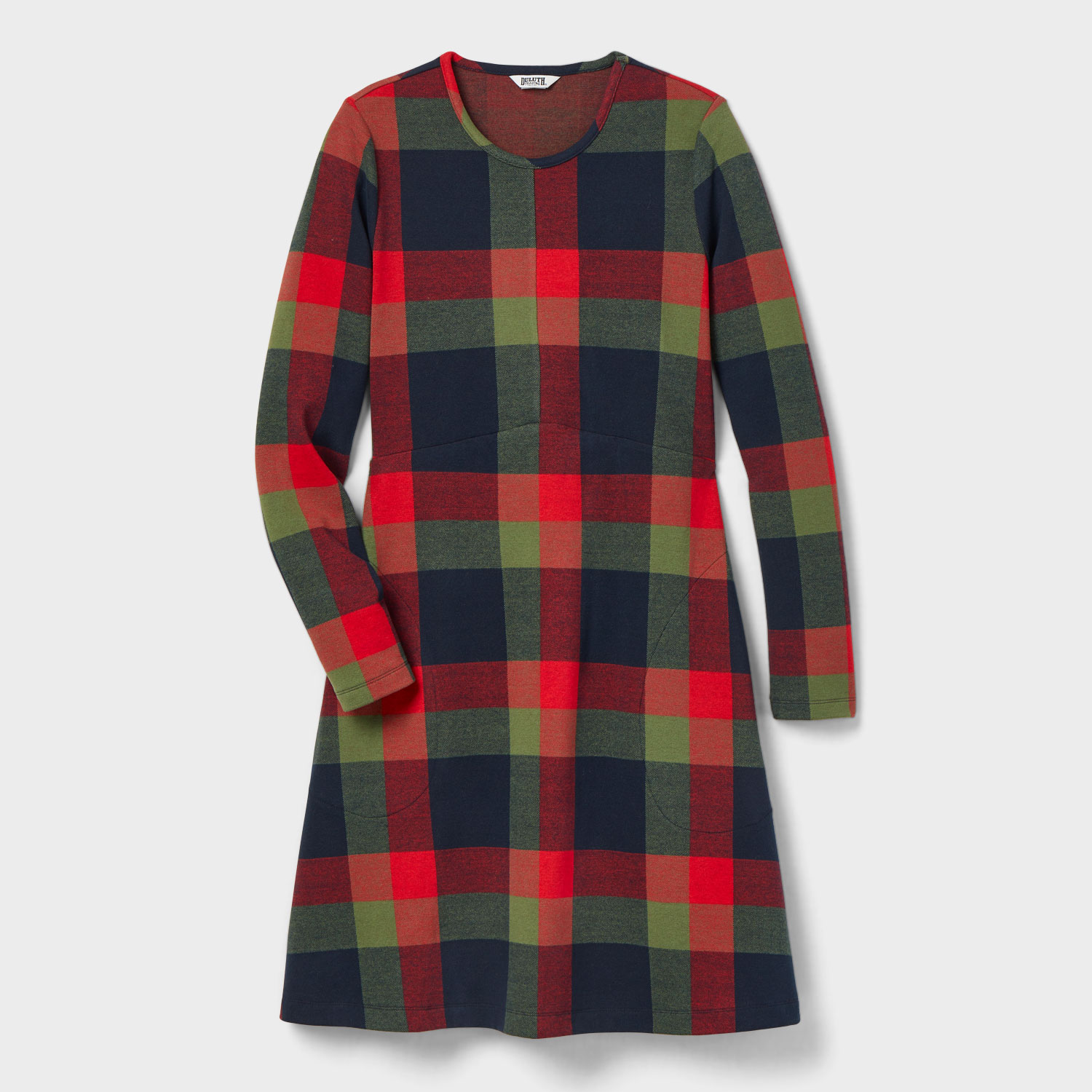 It’s hard to imagine a fabric more comfortable than classic flannel – but by gum, we’ve done it! Soft knit t-shirt fabric looks just like woven flannel, in traditional plaid that’s brushed to perfection. The T-Shirt Flannel Dress’s stretchy construction hugs your curves in all the right places and allows for freedom of movement just not found in woven fabrics. And of course, there are pockets – 2 on-seam hand pockets cut deep and wide for cards, keys and cash. Layer up over leggings or go it alone. This long-sleeved dress is a one-and-done style solution you’ll reach for all season!