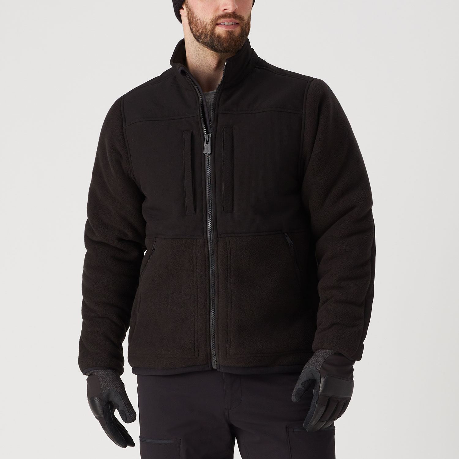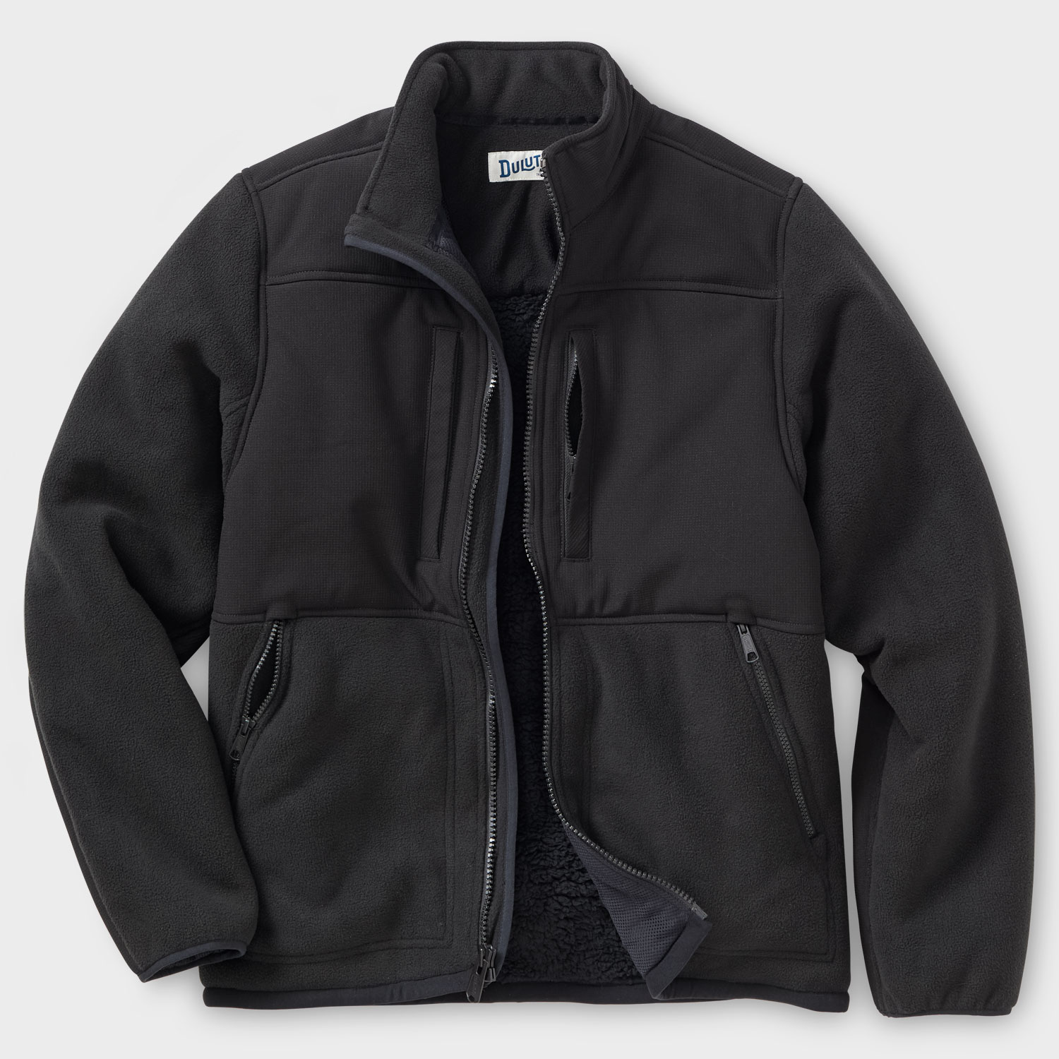 - 100% polyester microfleece outside bonded with sherpa fleece lining makes for one burly jacket