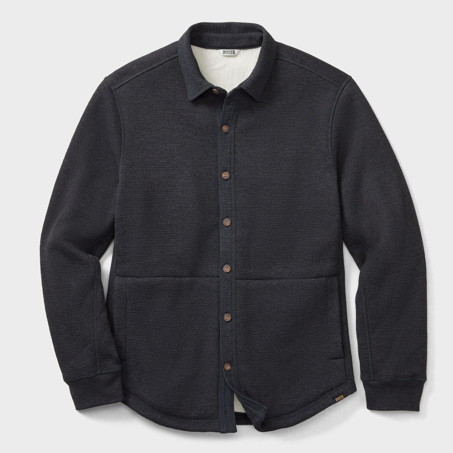 - 12.6-oz. burly thermal waffle shell fabric is bonded with 100% polyester sherpa fleece to turn up the heat without bunching or binding