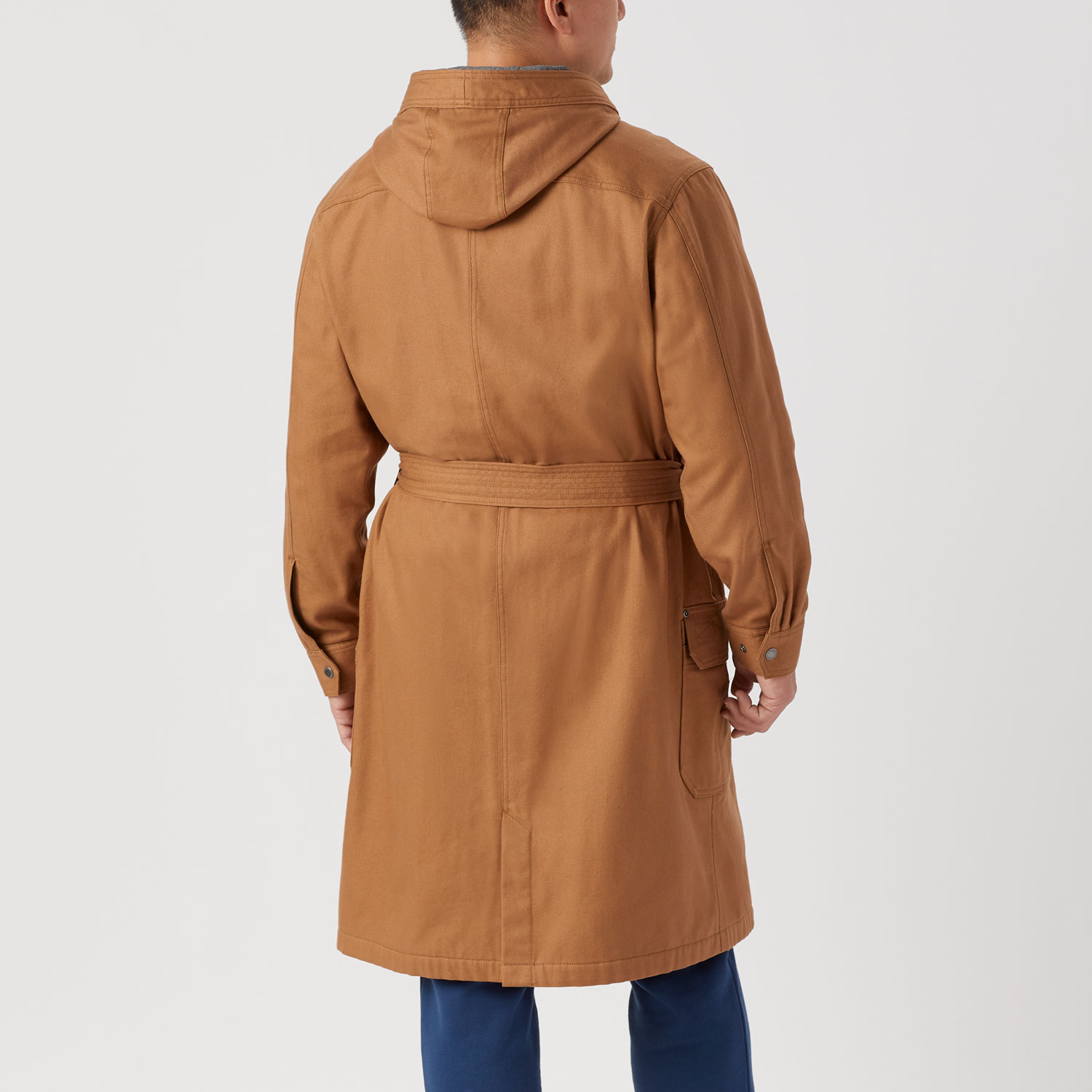 - Hood with snap closure, adjustable belt, adjustable snap cuffs