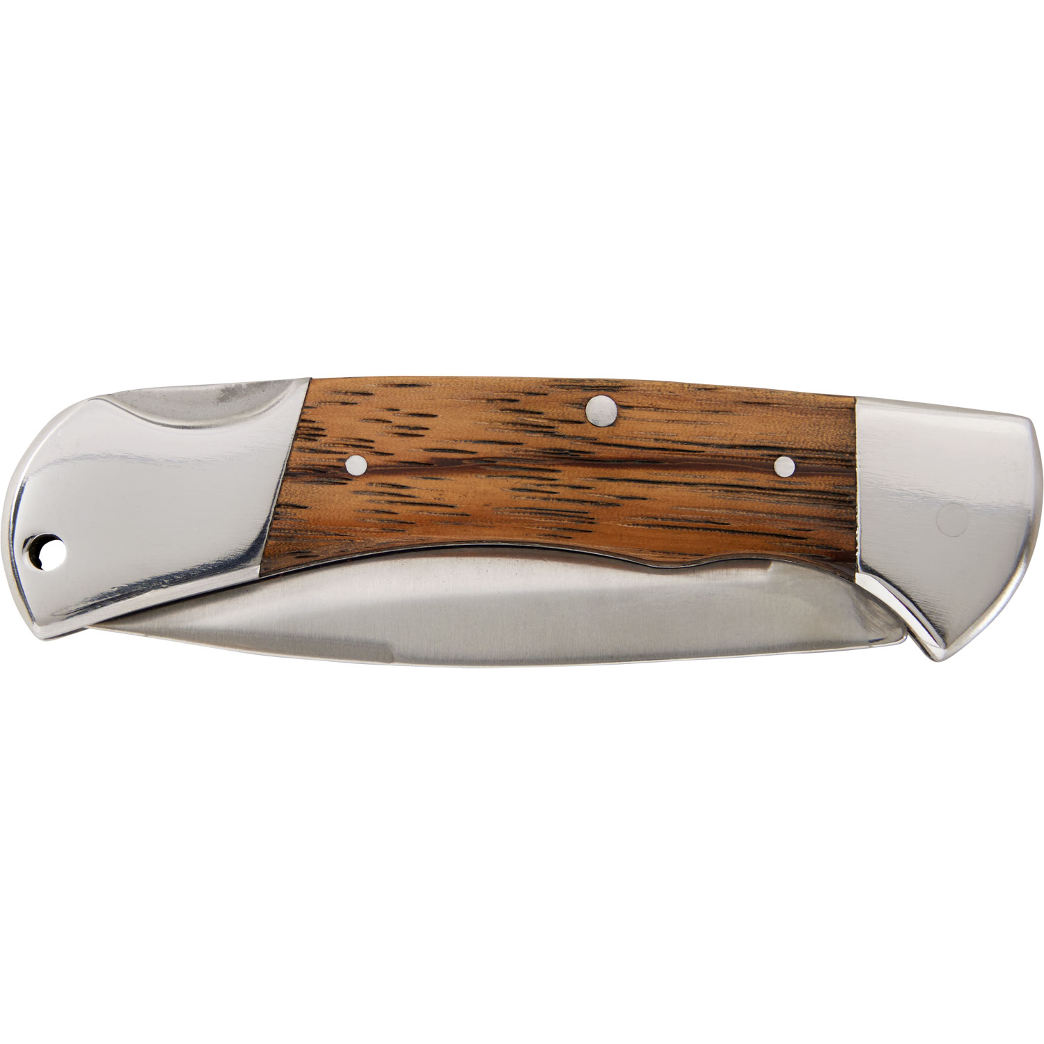 - Handsome zebrawood handle boasts an antiqued brass Angry Beaver emblem