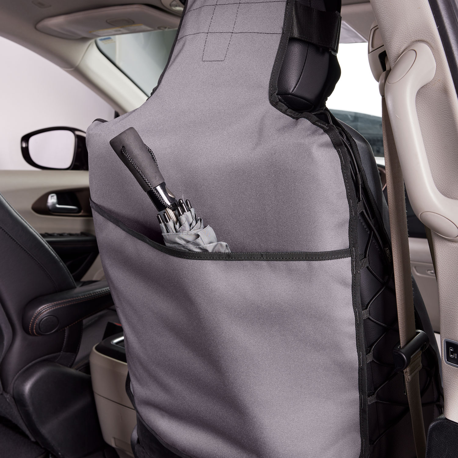 - Dual side pockets with pass-through to access seat controls