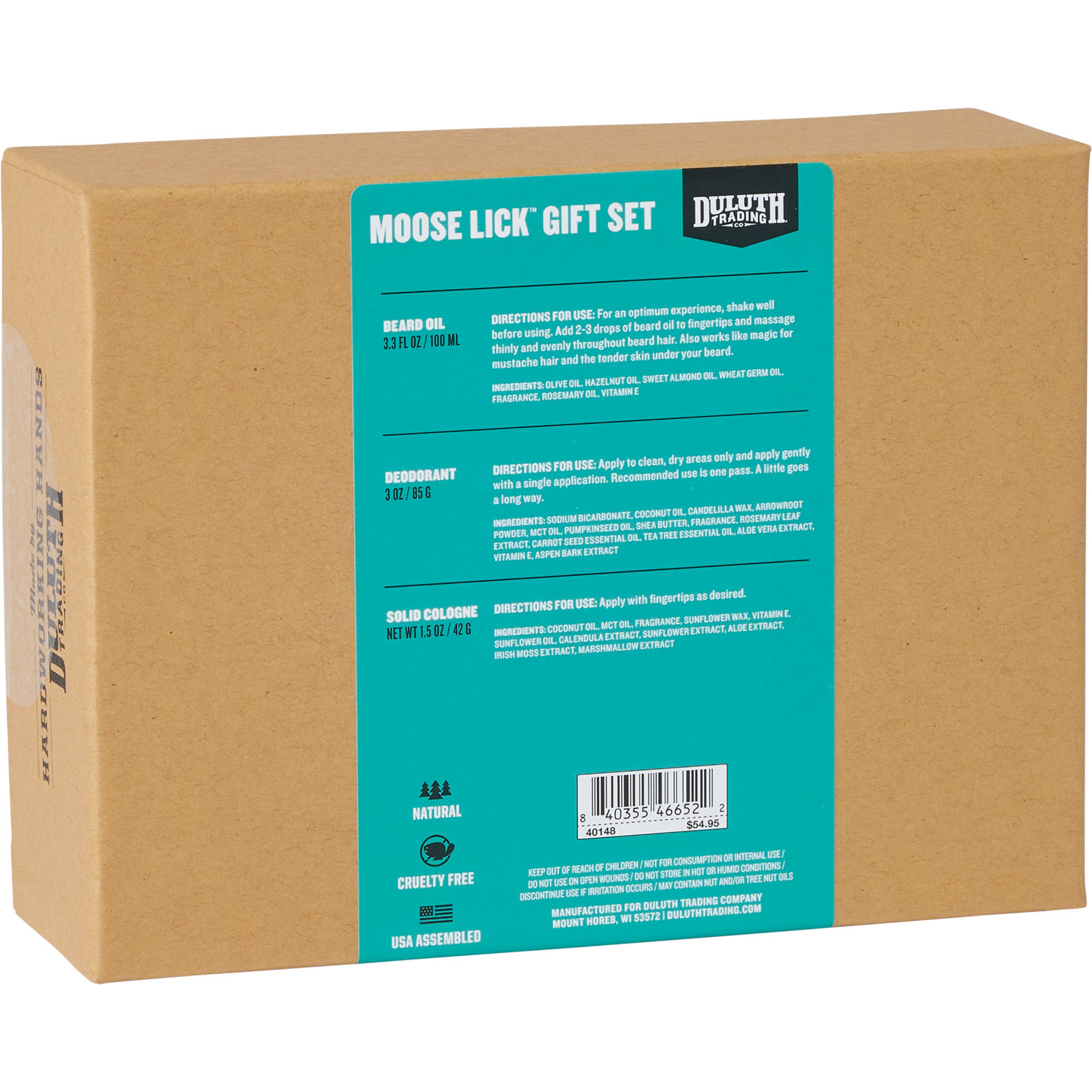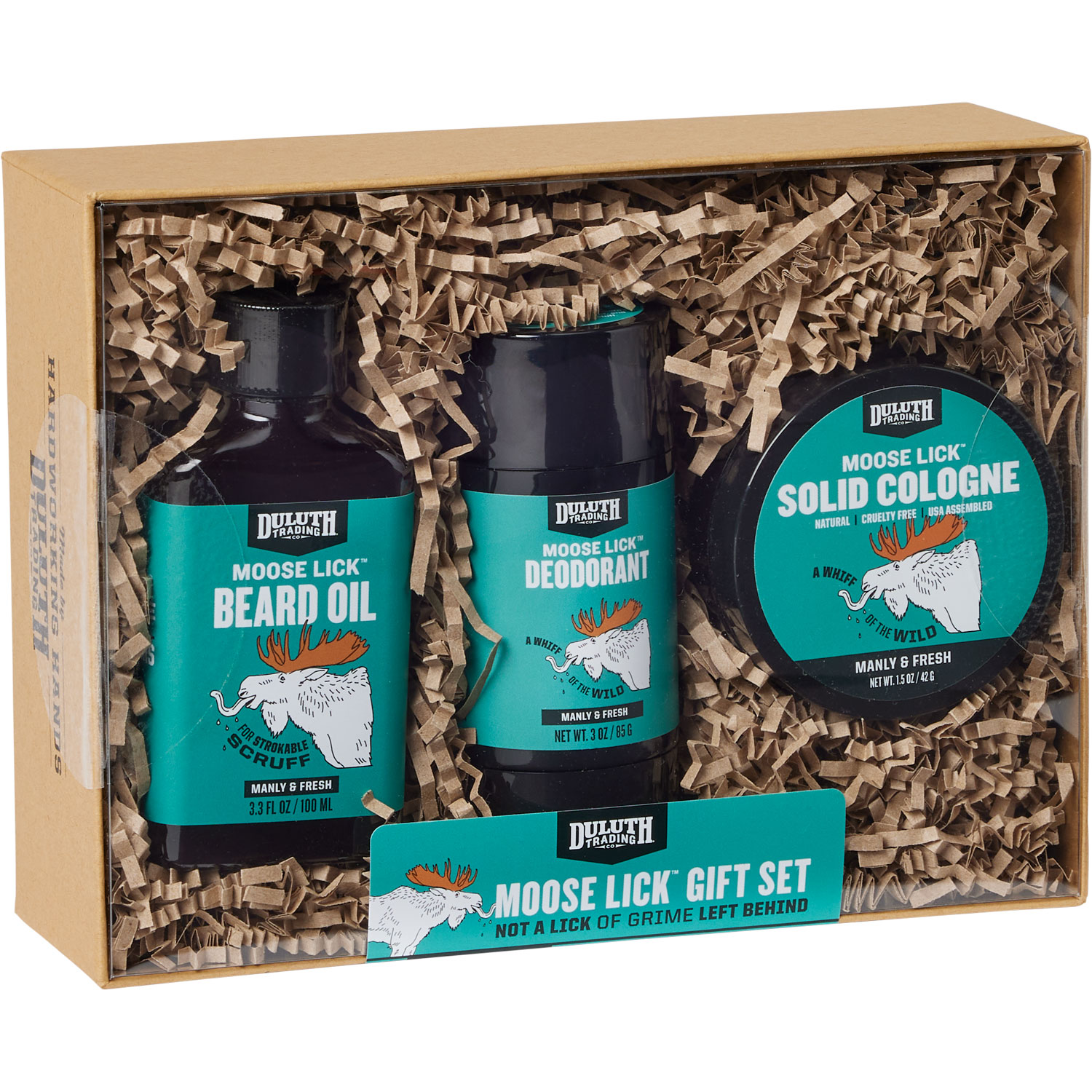 - Whisker-taming beard oil, stink-subduing deodorant and easy-to-apply solid cologne in a classy gift pack