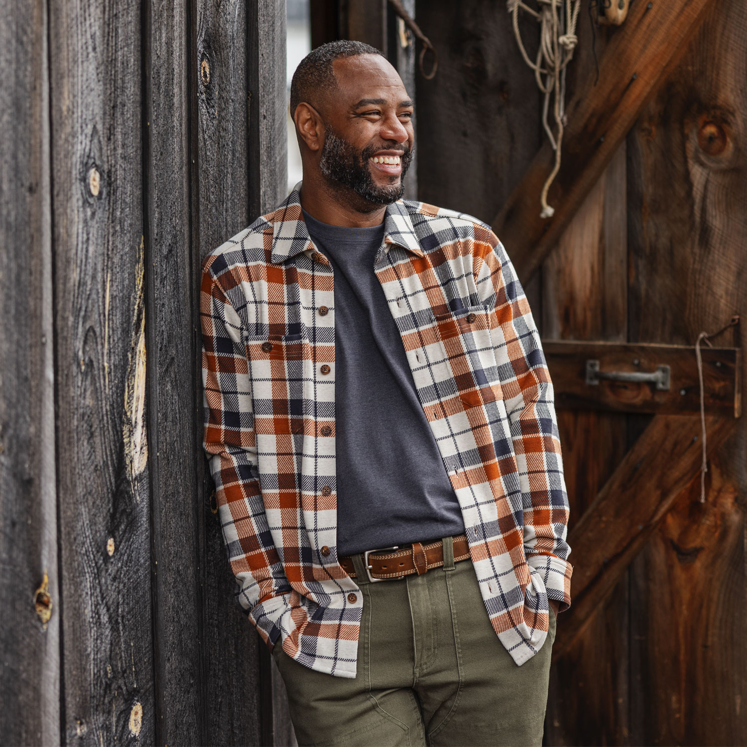 If your favorite flannel shirt and your comfiest t-shirt had a baby, this is the shirt they’d produce. The hearty knit fabric is incredibly soft and brushed to plush perfection. A touch of stretchy spandex makes it feel as relaxed as a laid-back weekend by the lake. And the yarn-dyed plaids are so bold and colorful, any lumberjack would wear ’em proudly. When you’re felling logs, choose Free Swingin’ Flannel, but when you’re falling into your easy chair, make T-Shirt Flannel your go-to.