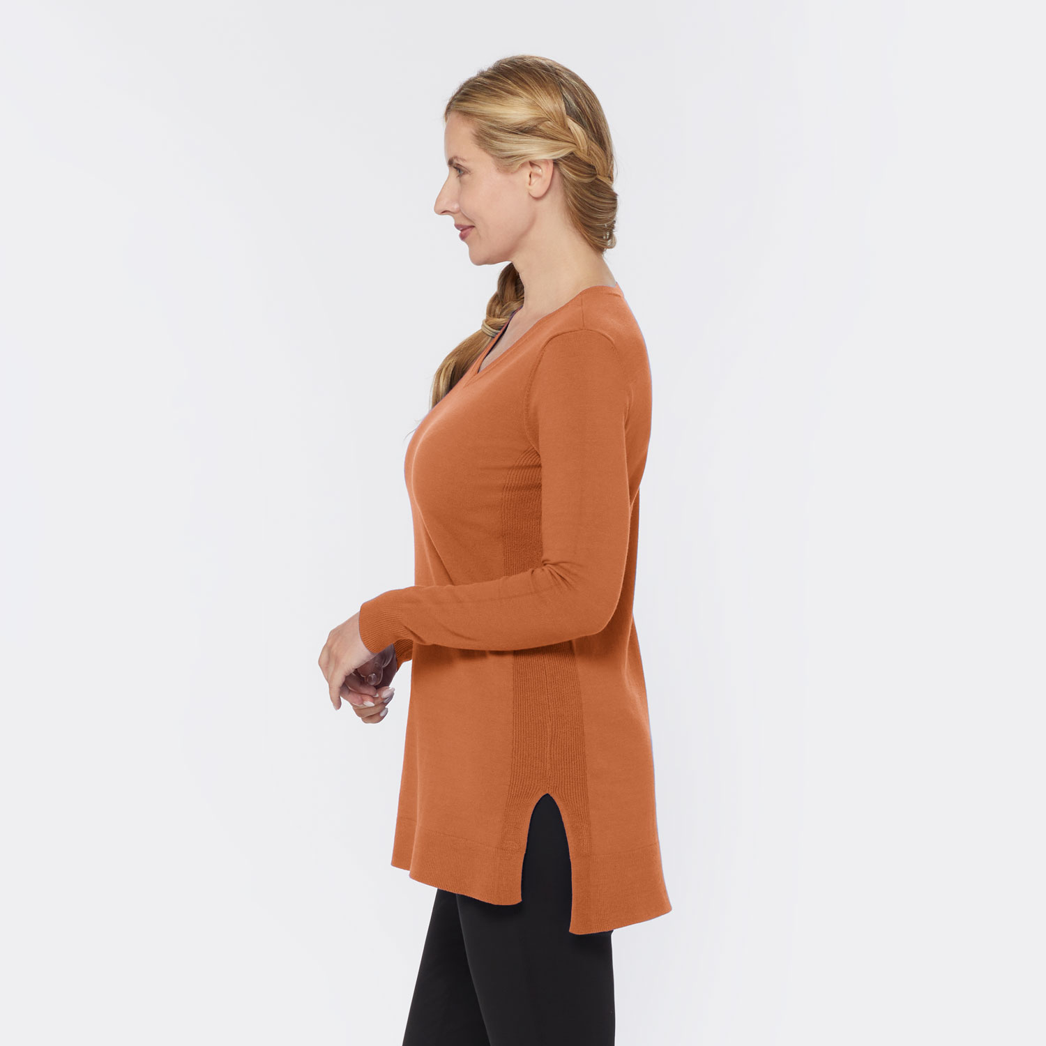 - Stretchy rib-knit cuffs, v-neck and bottom hem stay in place; won’t stretch out of shape
