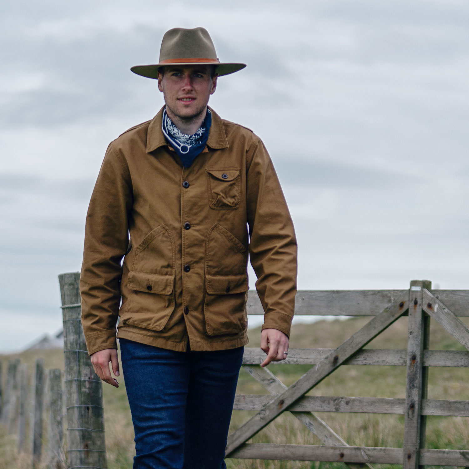- 9.9-oz. 100% cotton textured canvas spun and woven in Spain, and treated with a unique finish that imparts the appearance of waxed canvas
