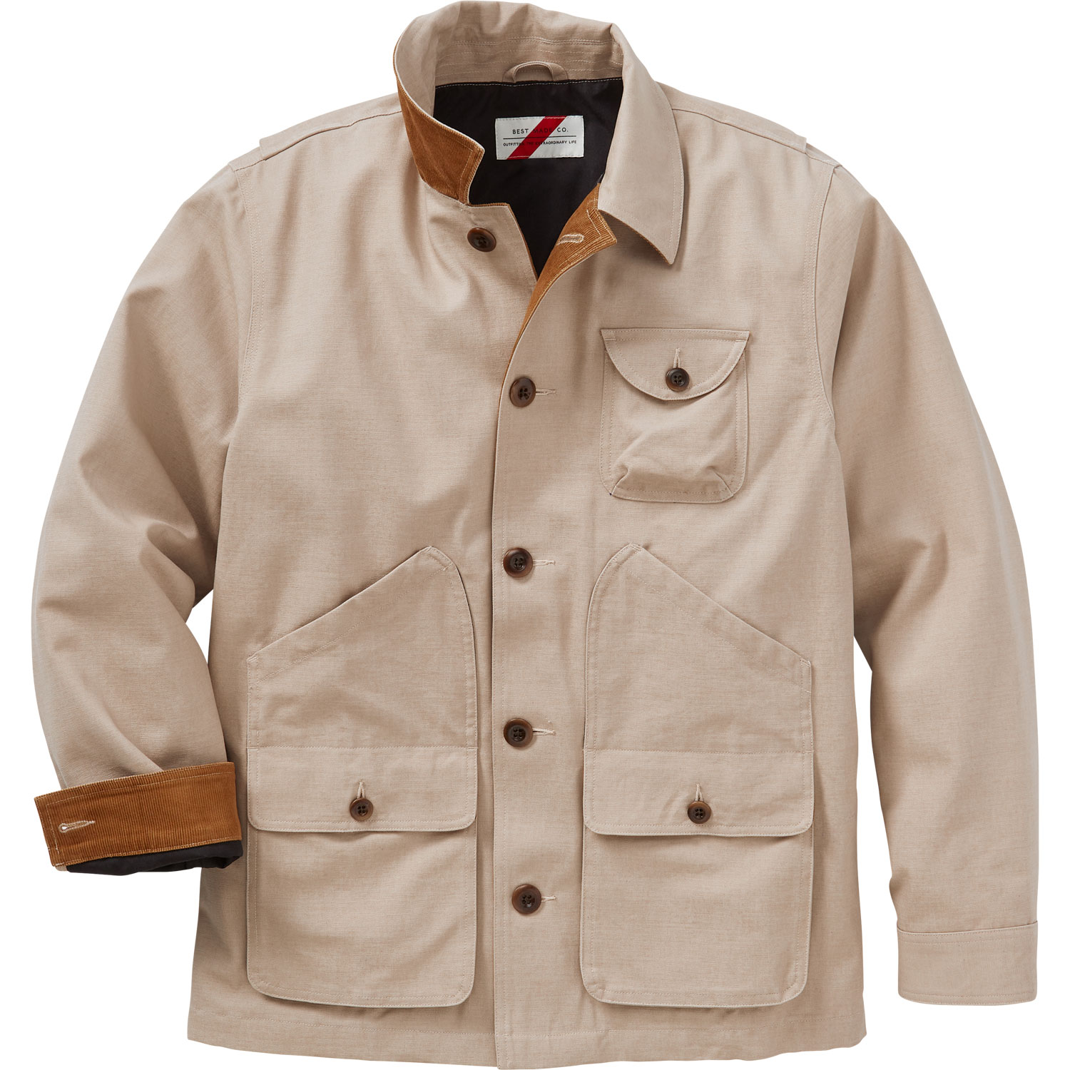 - Impeccably pocketed with button/flap chest watch pocket, interior zippered Napoleon pocket plus 2 open and 2 flapped lower pockets