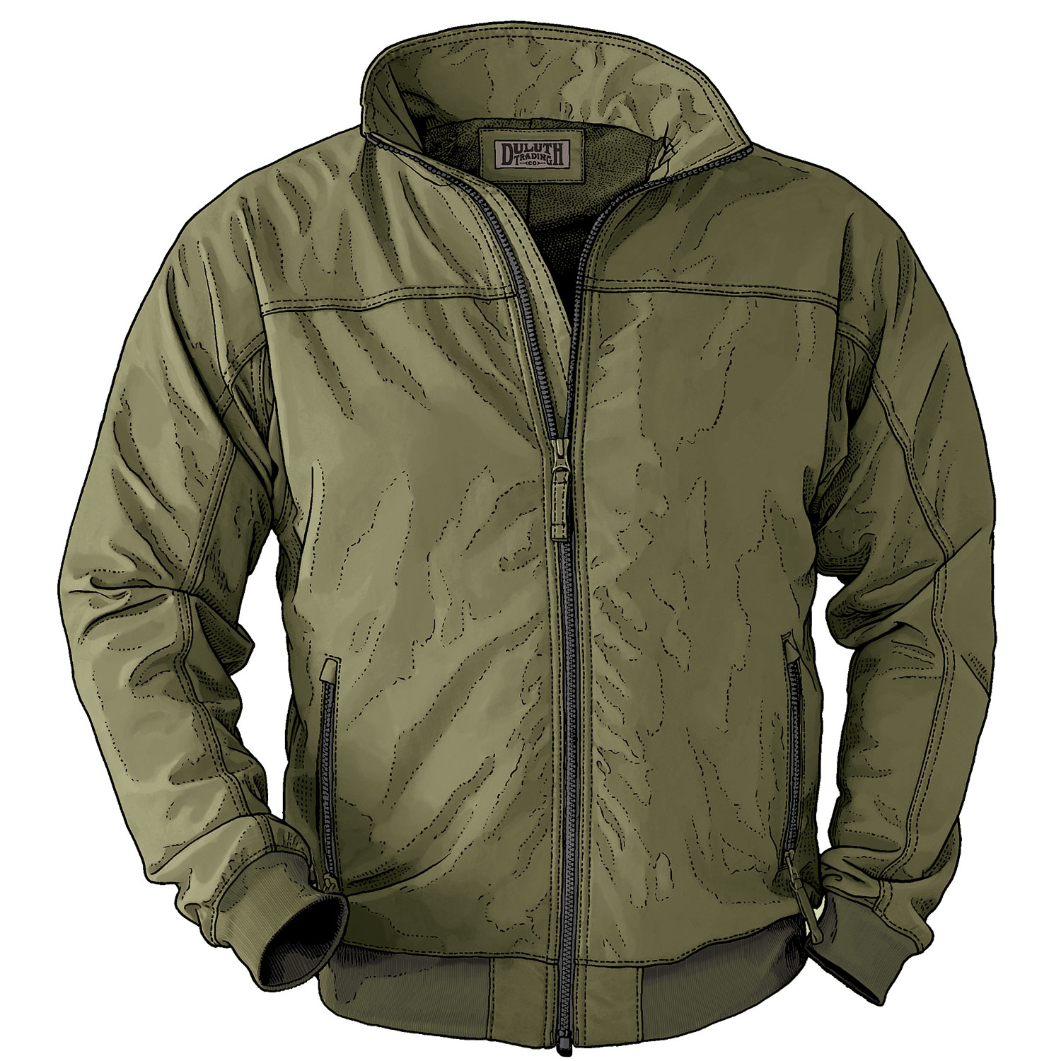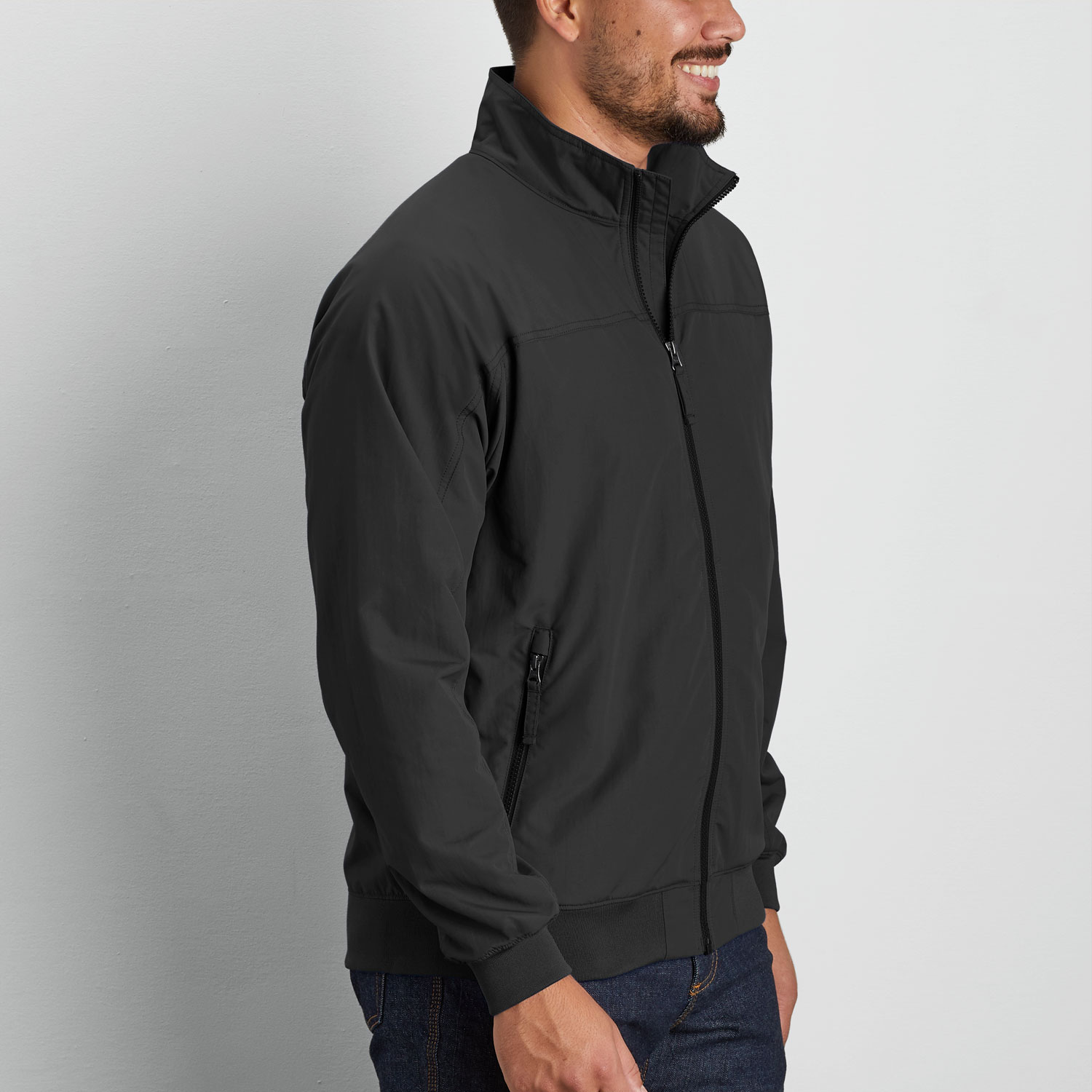 - Rib-knit cuffs and hem stay in shape