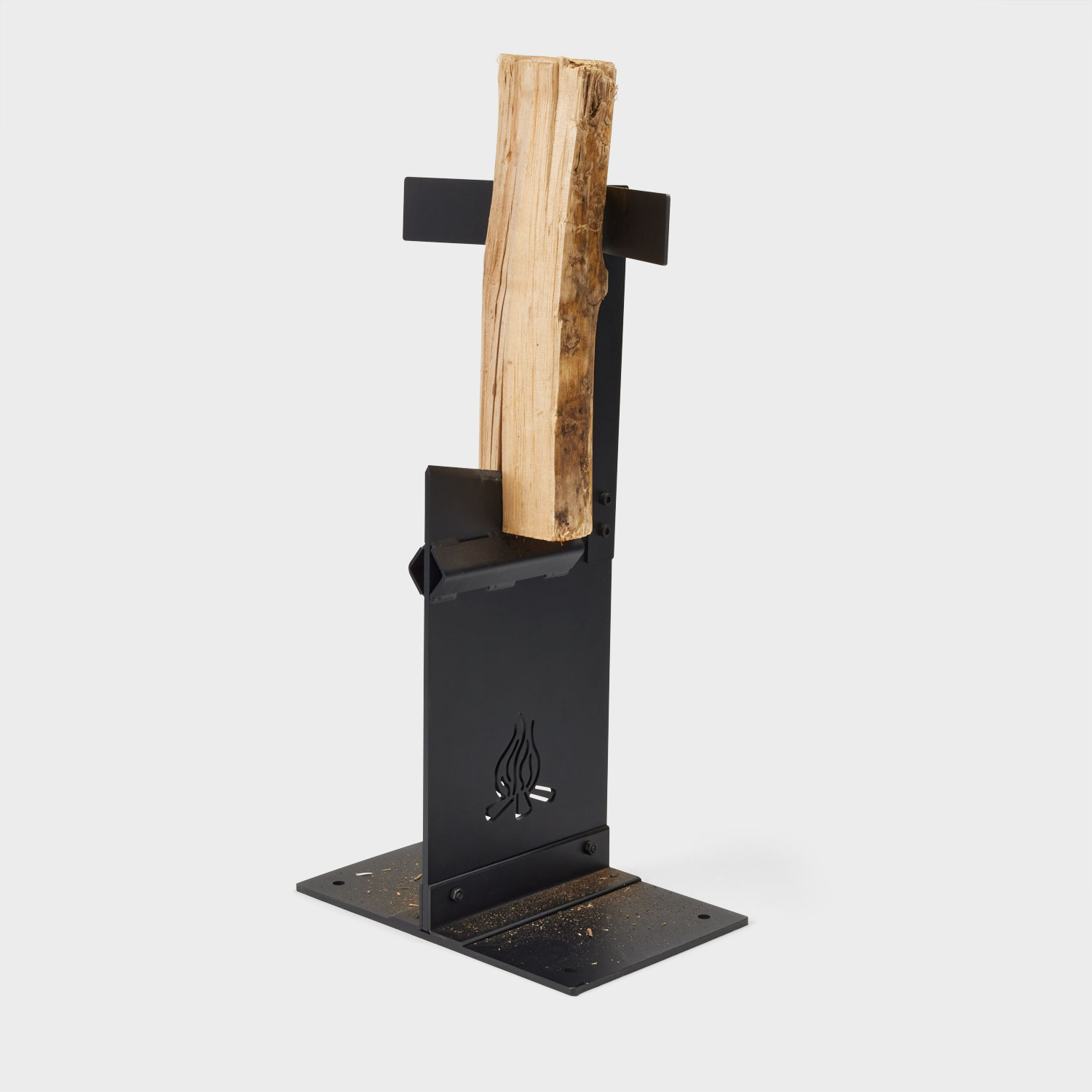 Time to retire your splitting maul. The open design and sharp blade of the Firewood Log Splitter lets you power through logs and gnarly grain faster and with less effort. Better yet, it’s far simpler to use and safer, too – no need to to swing an ax over your head. Just place your log on the upward-facing stationary blade, using the angled arms for secure support. Then all it takes is a few smacks with your hammer or mallet to turn the toughest log into campfire fuel. There’s no restrictive ring like most other models, so it’ll work on logs of any size. Rugged powder-coated steel construction takes a pounding.