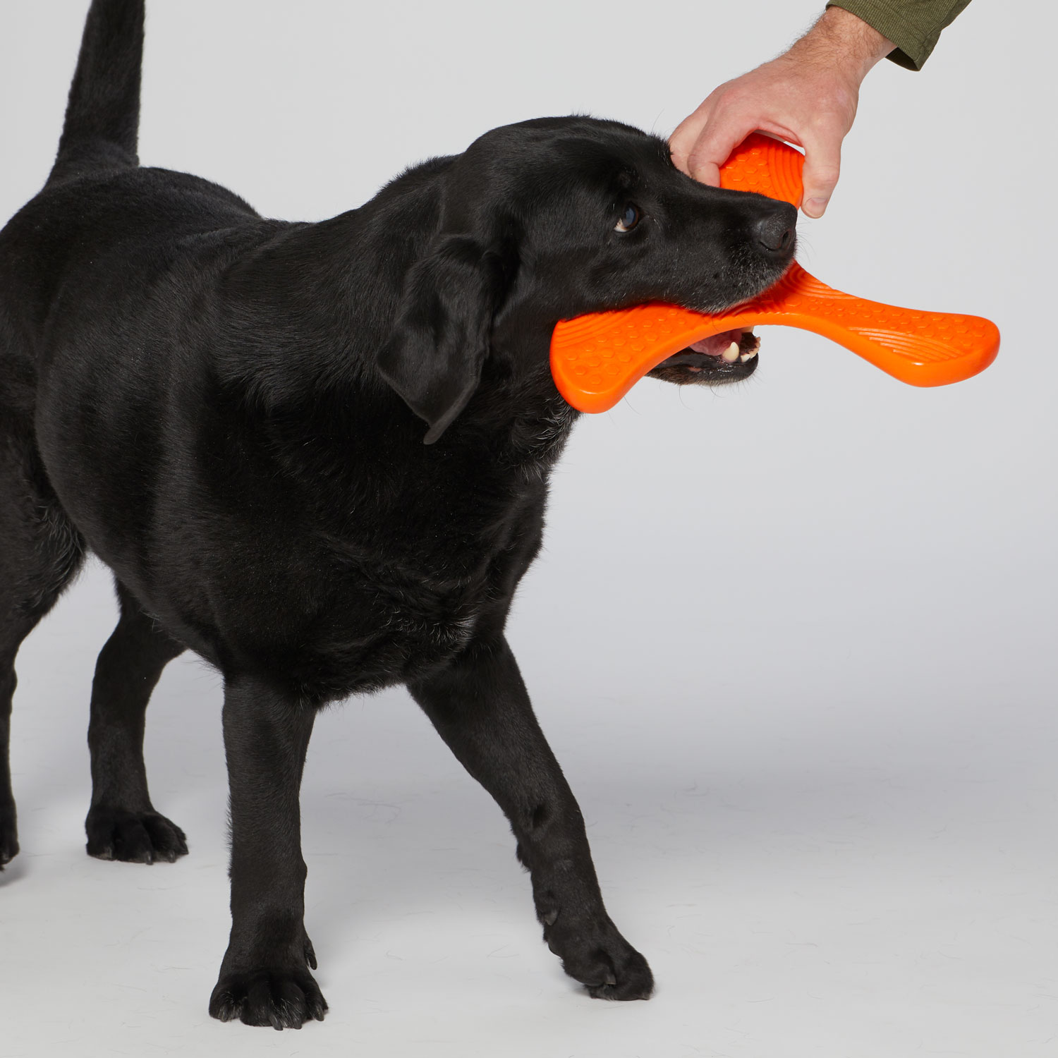 Even those golden retrievers that can stuff five tennis balls in their mouth prefer the antics of the N-Gage Propeller. And who can blame ’em? When thrown like a disc, this 3-pronged toy spins through the air and bounces erratically – exciting dogs into a fetching frenzy. Or roll it like a wheel to give your pet the thrill of the chase. Tough TPR material stands up to tossing, tugging and Ol' Fang's chomping. Even floats – ideal for practicing water retrieves.