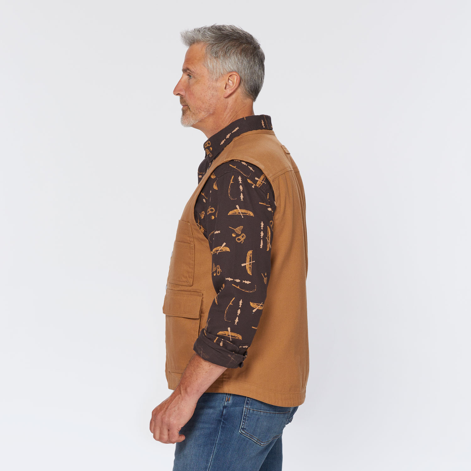The best-engineered designs deliver everything you need without weighing you down with needless extras. Case in point: Duluth’s Fire Hose® Working Man’s Vest. Its 8-oz. Fire Hose canvas is rugged, yet light enough to keep you agile and active on the job. A FendOff Finish® fabric treatment resists mist and sheds greasy stains. Plus it’s fully tricked out with 9 pockets, including top- and side-entry lower pockets to carry all your essential cargo. Use the back locker loop to hang it by the door, ready to dominate your work day.