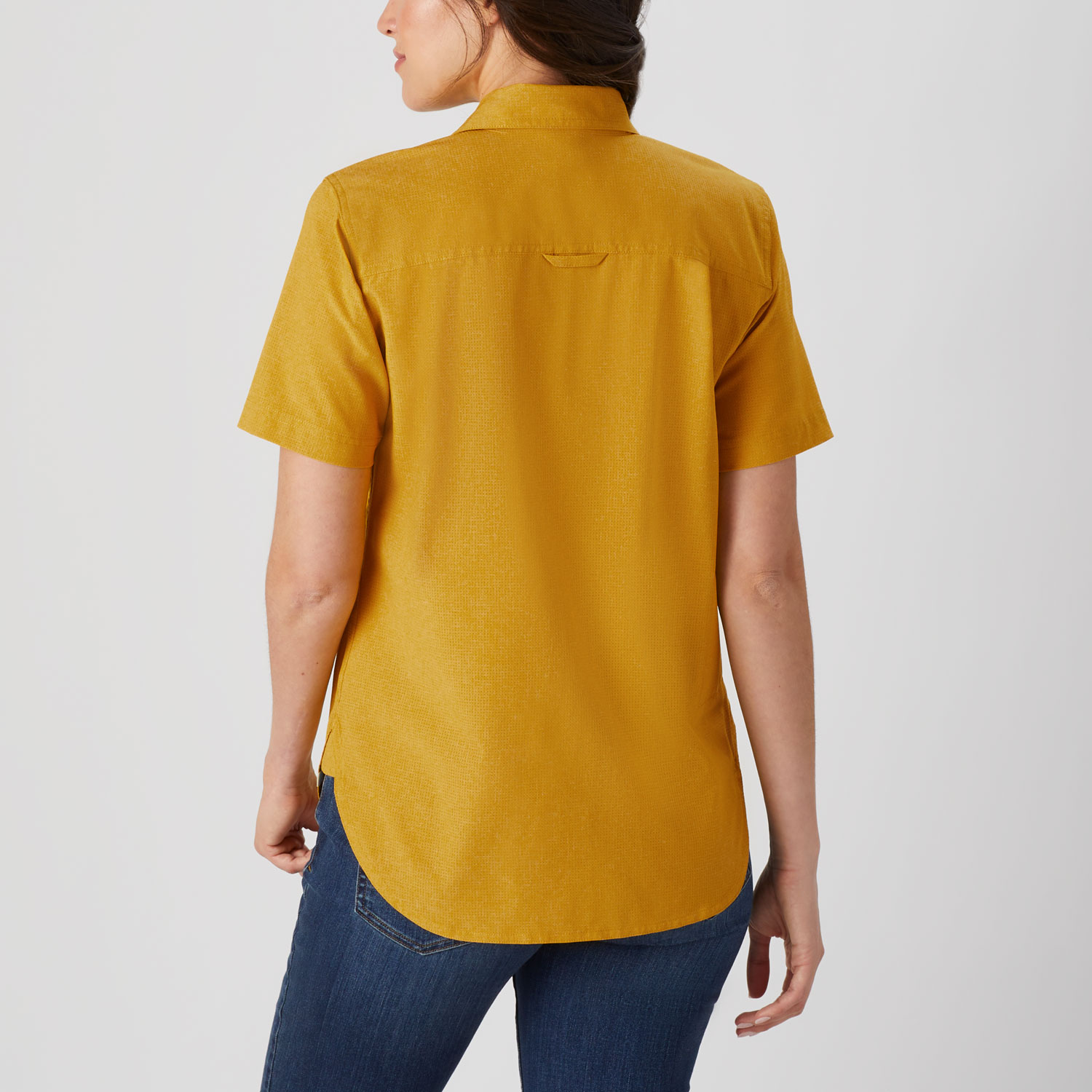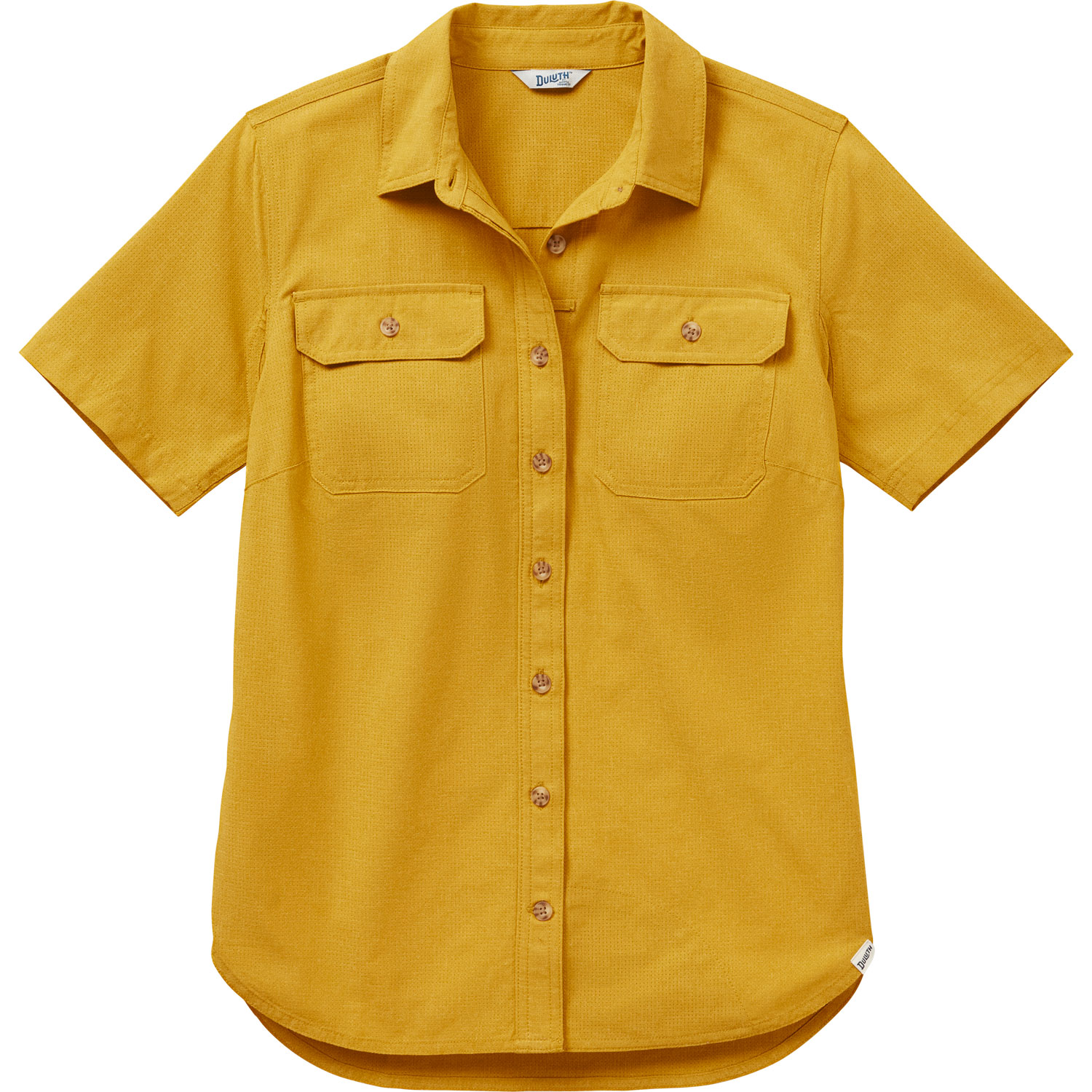 - No-gape button placket keeps coverage buttoned up