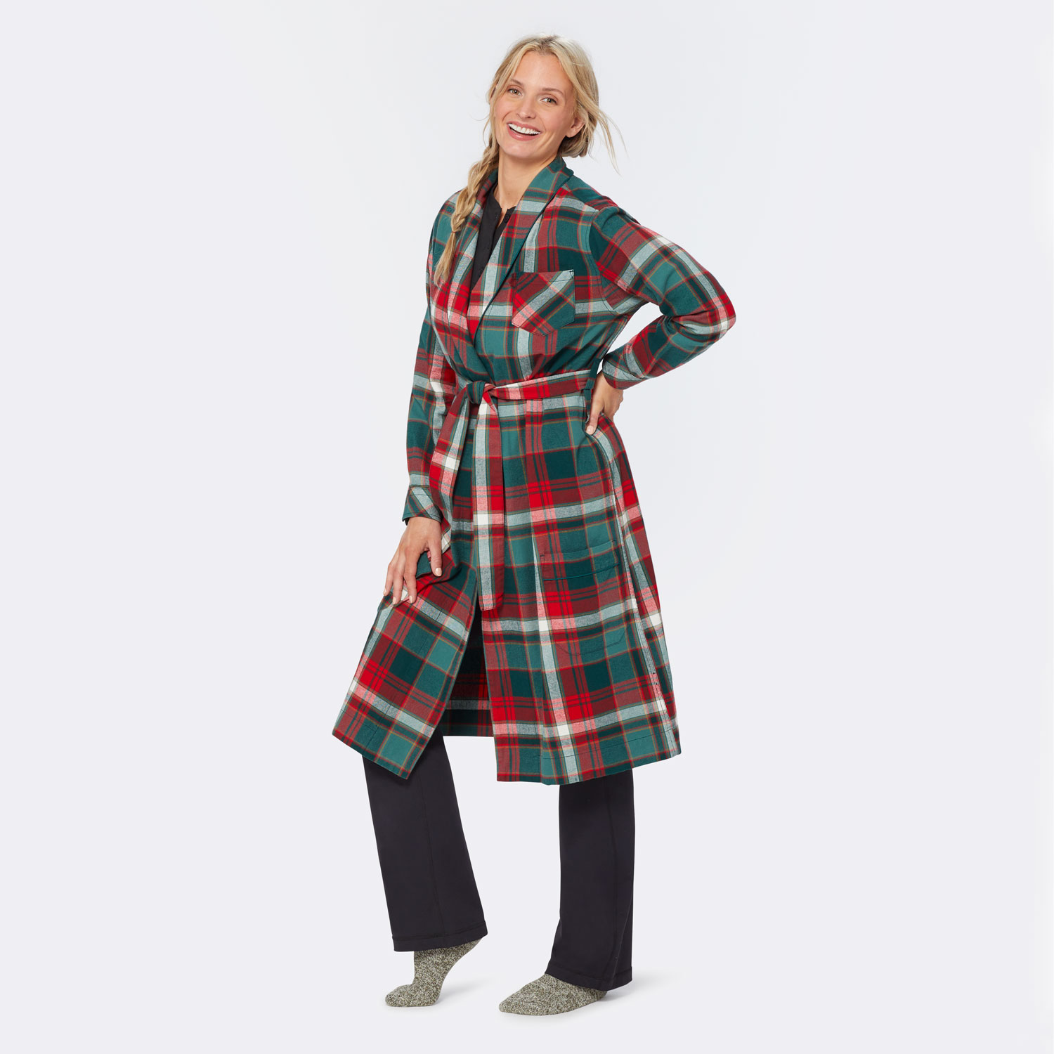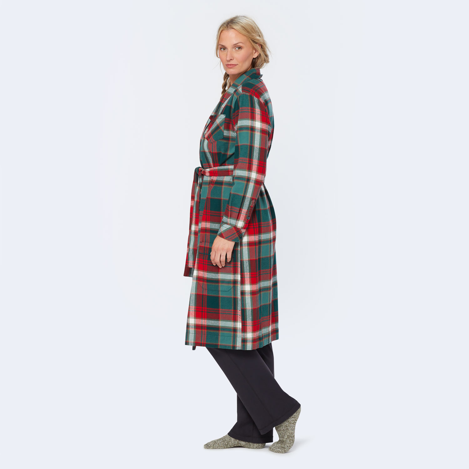 - Shawl collar with corded piping detail make this a classic choice in Free Swingin' plaid