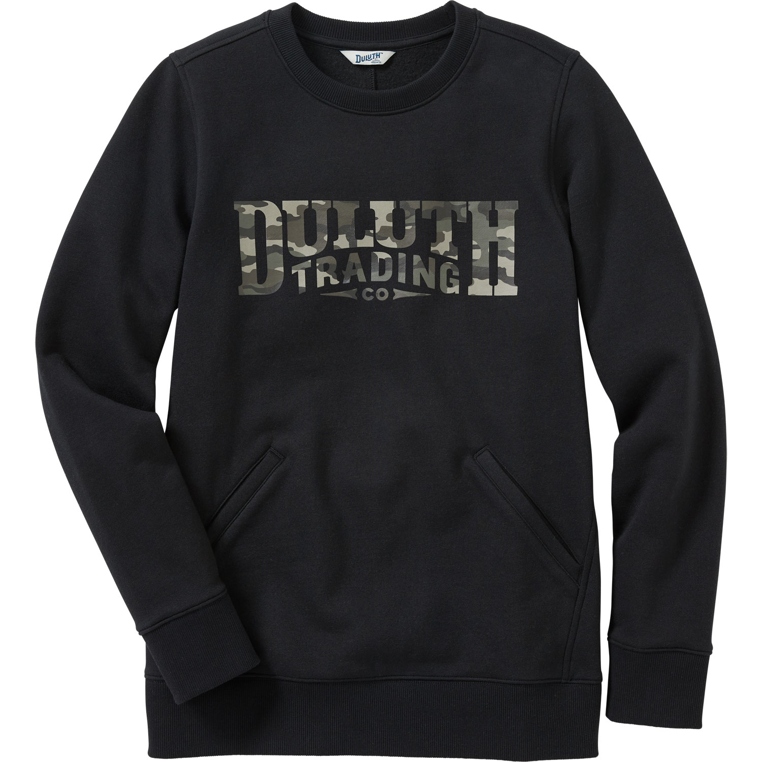 - Crewneck sweatshirt with your favorite workwear company’s logo emblazoned on the chest
