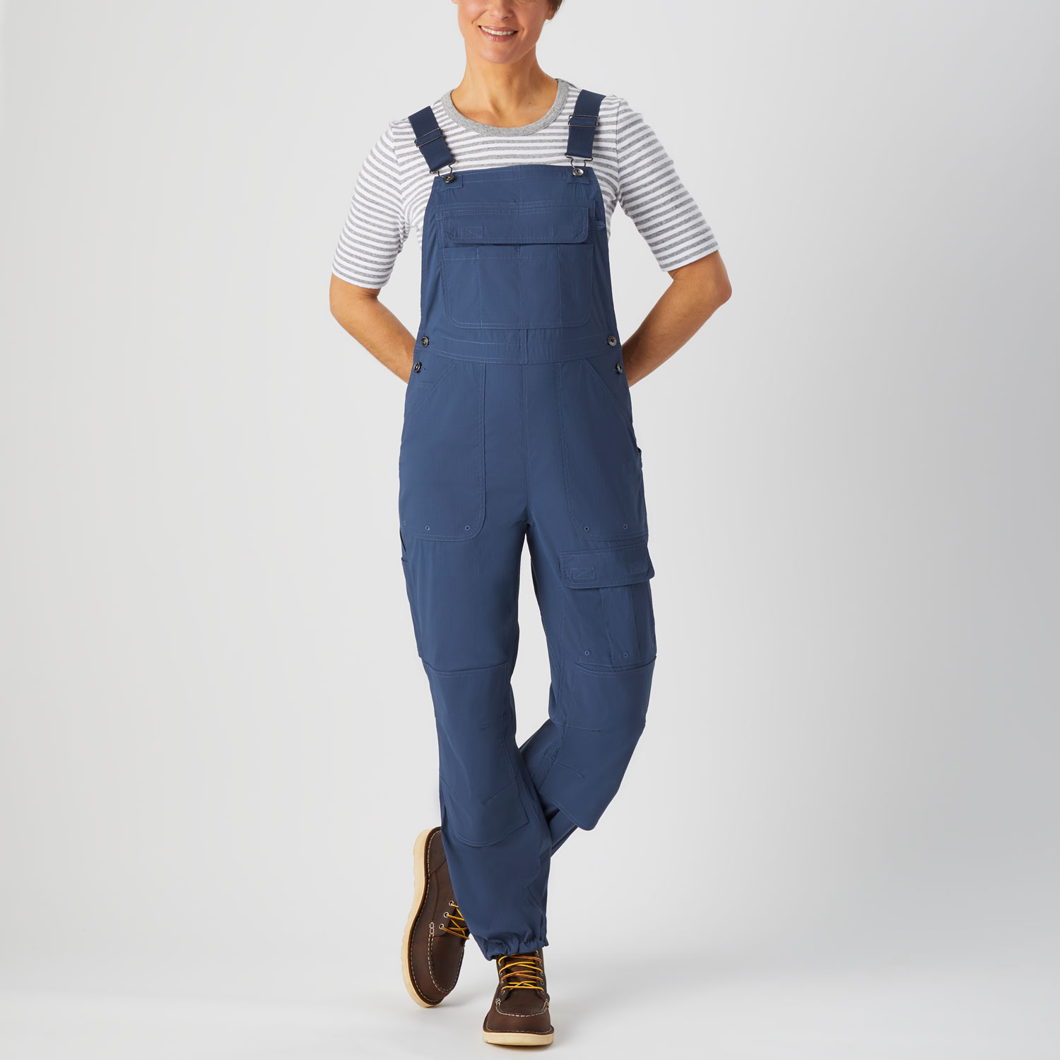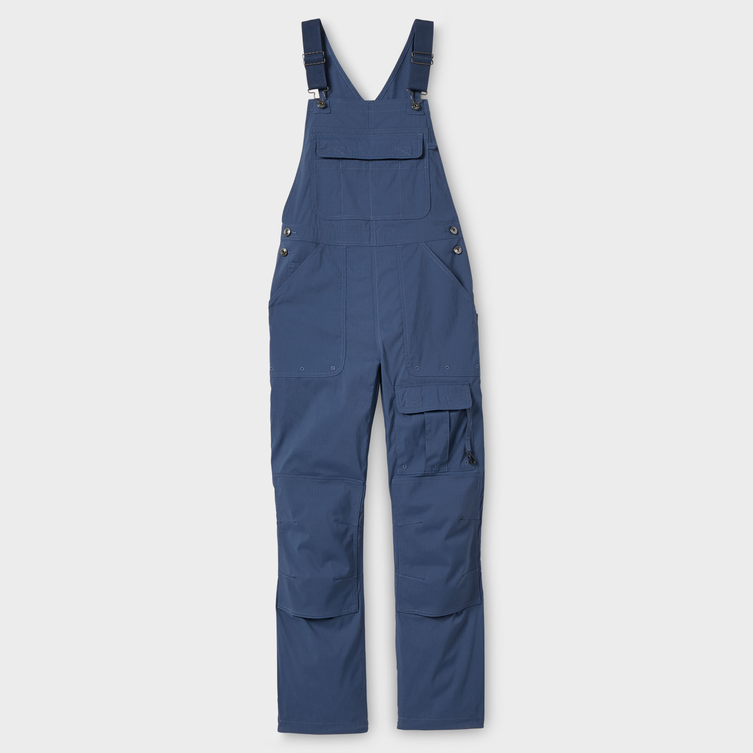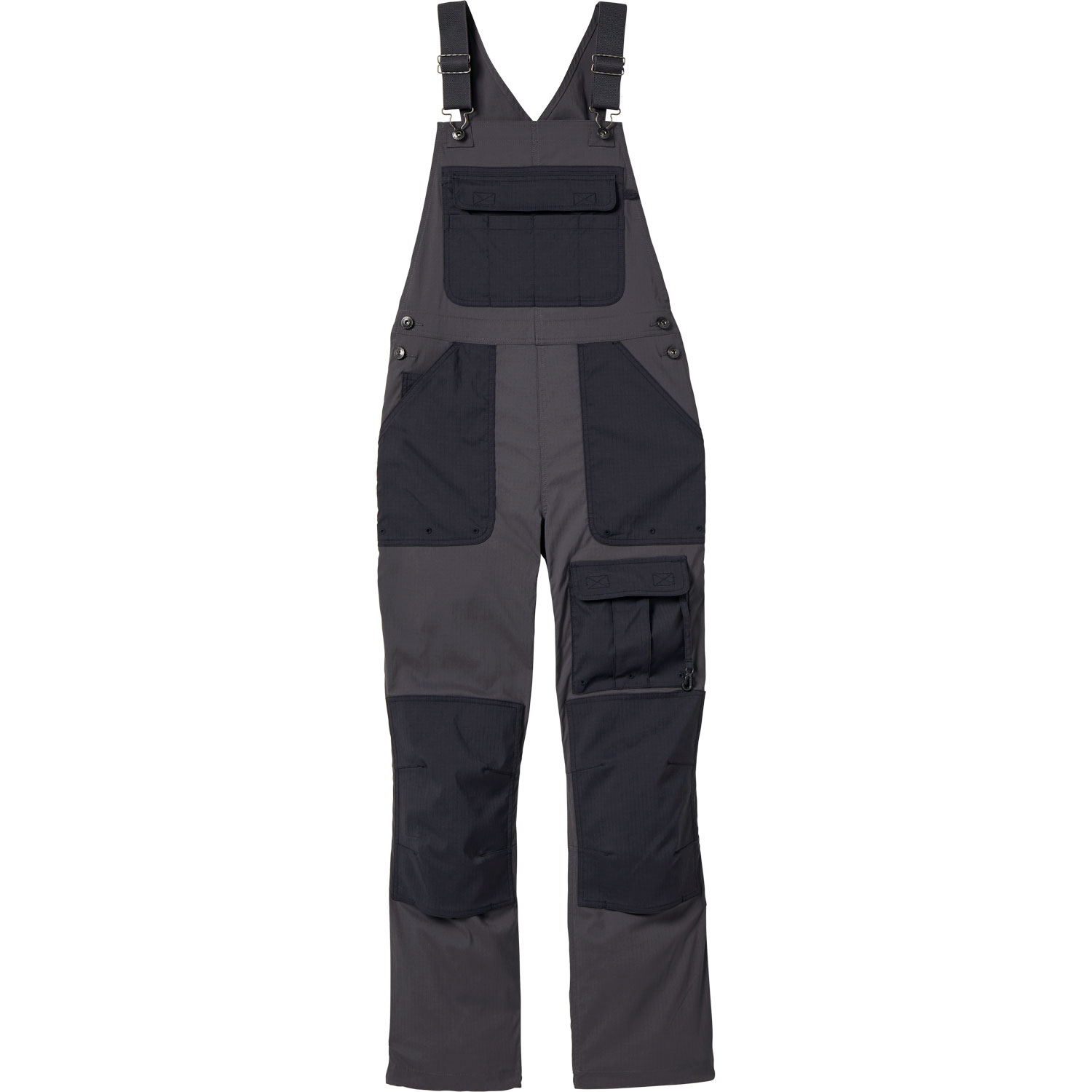- A staggering 13 pockets total, including a bib storage system with zippered pocket behind 4 patch pockets, front pockets, coin pocket, front cargo pocket with hook-and-loop flap closure and lobster claw clip, back pockets with hook-and-loop flap closure, and back utility pocket with top and bottom openings