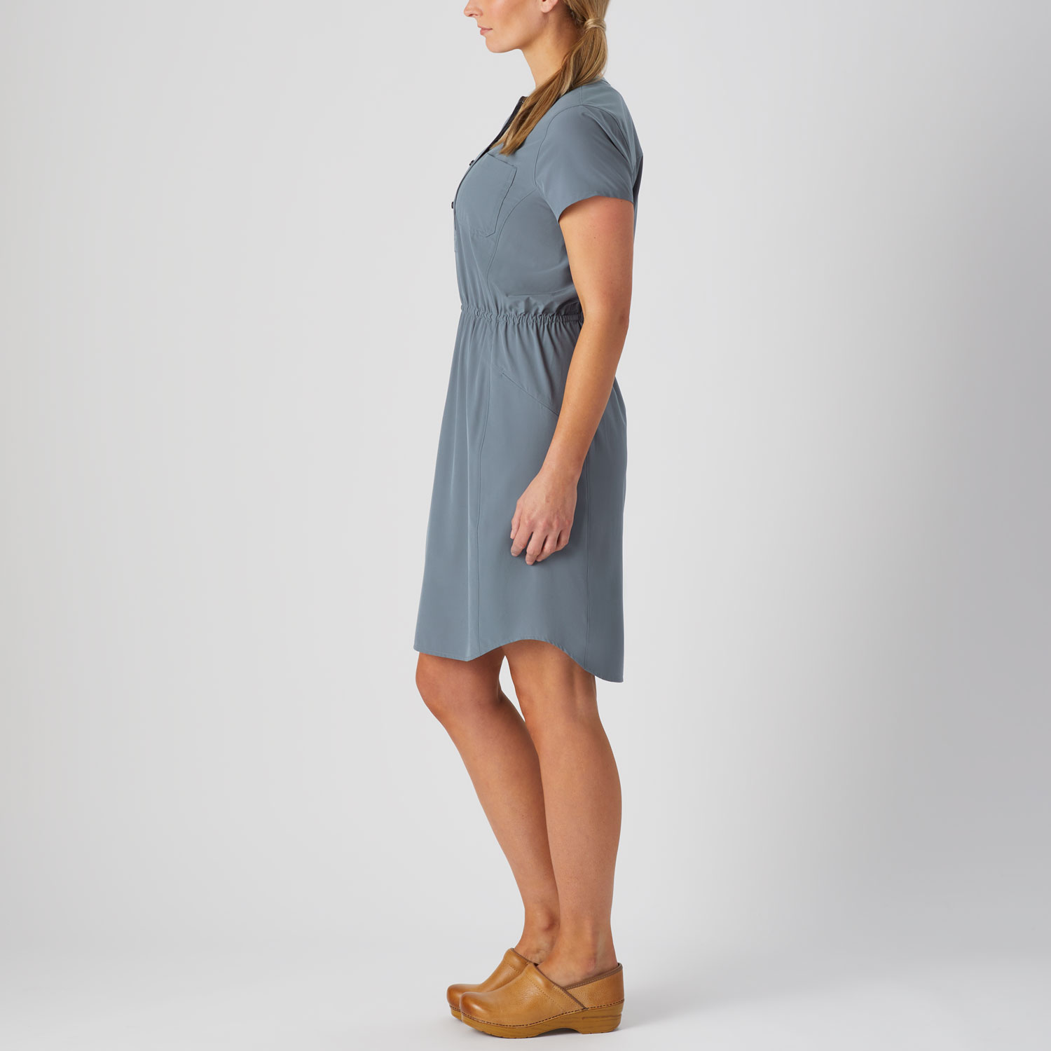 Introducing the Nine to Fine Synthetic Cap Sleeve Dress – our newest one-piece wonder! Made from recycled polyester with a healthy shot of 4-way stretch, it’s a stylish and practical addition to your professional wardrobe. It’s imbued with an odor-fighting, anti-microbial and wicking finish, so you can rest assured no one will see you sweat the small stuff. A handsome henley-style neckline lets you button up or down to your liking. And with its 3 low-profile pockets, there’s plenty of room to stash office essentials. There’s even UPF 50+ sun protection baked right in! With so much functionality, this durably drapey dress is sure to become an instant classic in your closet.