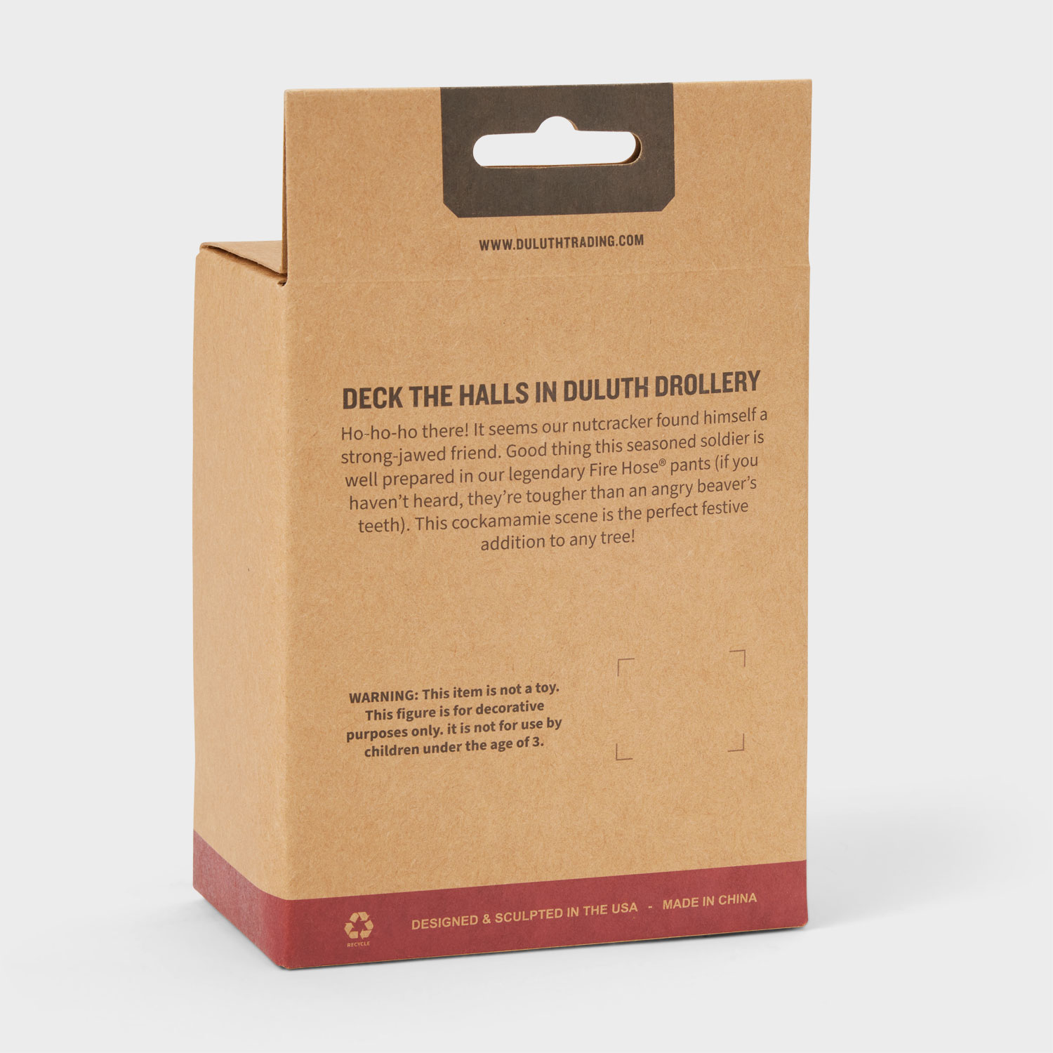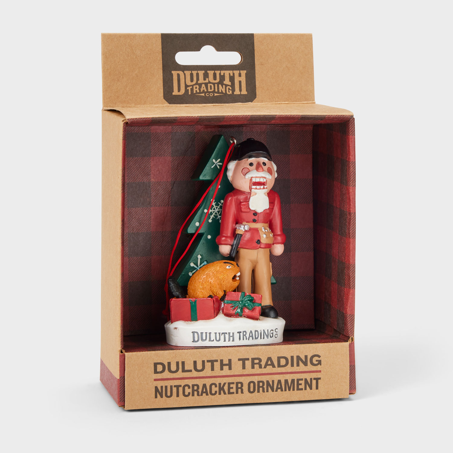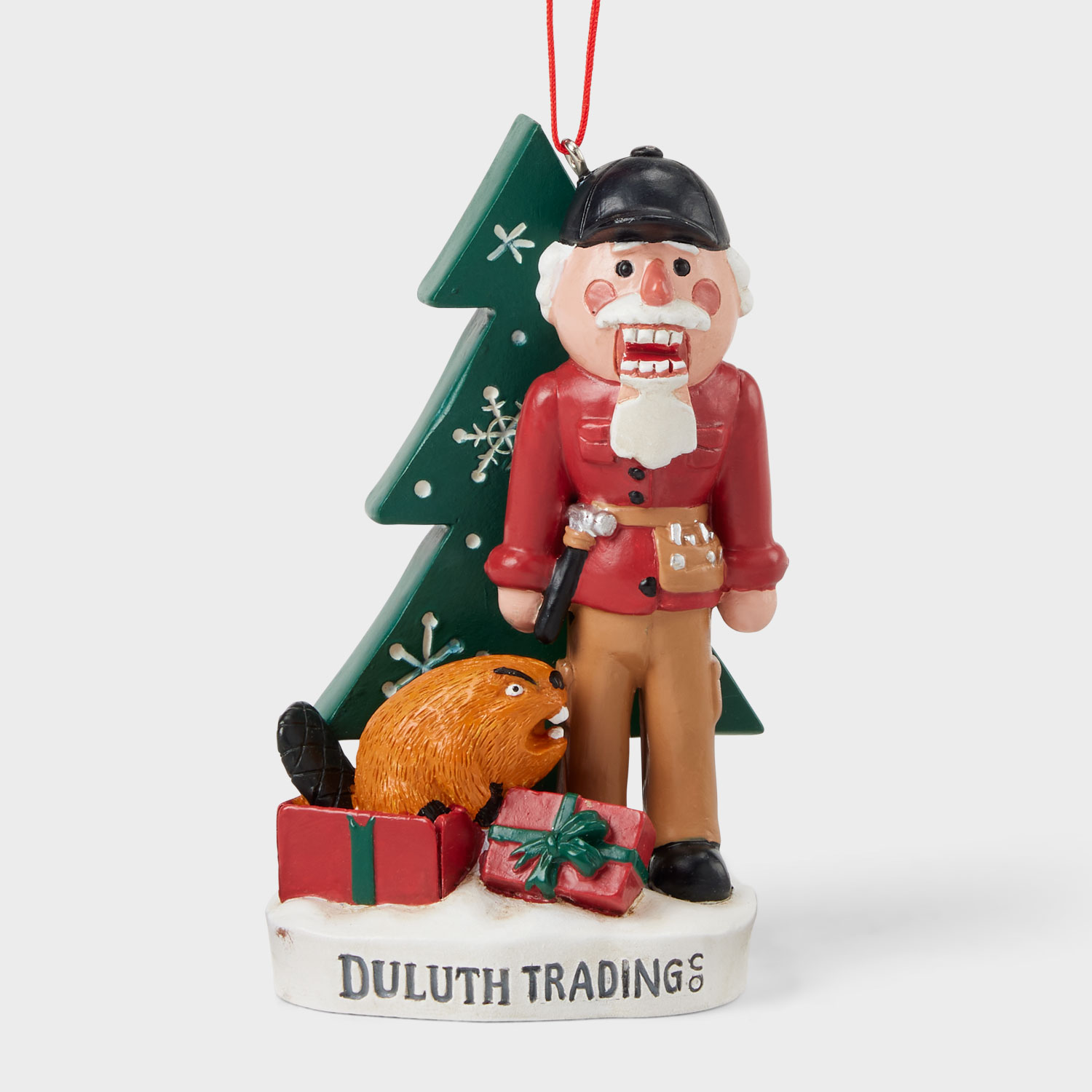 For centuries, nutcrackers have terrorized harmless nuts, mercilessly smashing their shells with iron-jawed glee. But now it’s time these holiday hoodlums get their comeuppance – and Angry Beaver is just the critter to deliver it. Duluth’s holiday ornament hilariously captures the exact moment of holiday mayhem when Angry Beaver leaps from a beribboned box to put the bite on nasty Mr. Nutcracker. Crafted of durable resin, the 4" ornament features all the Duluth detailing you expect, right down to the nutcracker’s flannel shirt and cargo pants. It’s a Christmas showdown you won’t find on any greeting card!