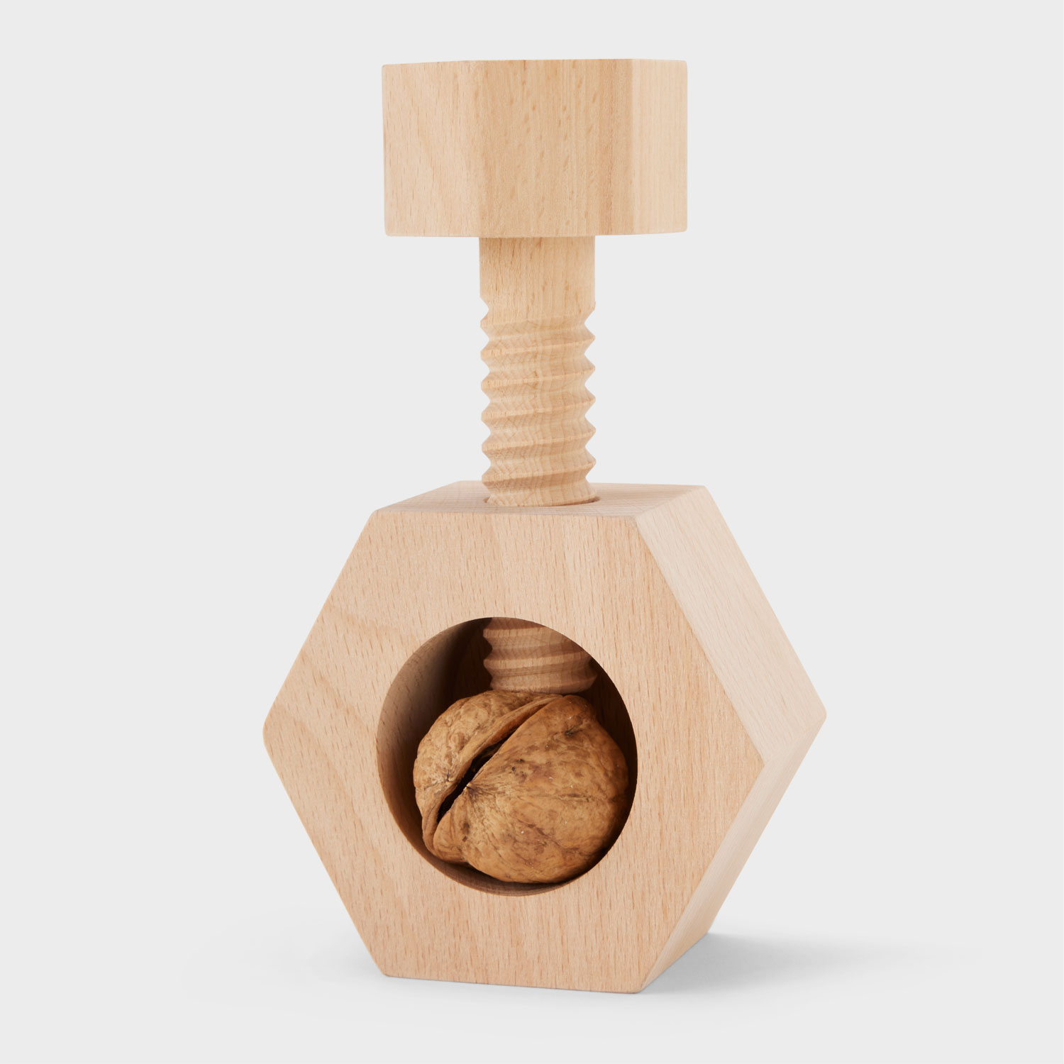 Sure, those nutcracker figurines look cool, but they couldn’t crack a walnut if their lives depended on it. So we set out to build a nutcracker that actually earns its name. The result: a sleek, effective design that gets down to the nuts and bolts of its intended use. Simply insert any edible nut in the center opening, then twist the bolt until the increasing pressure splits your pecan, walnut, almond, whatever. It’s the perfect blend of form and function, making it a must-have addition to your kitchen arsenal. Makes a great conversation starter and a fun, memorable gift for every gearhead on your list.