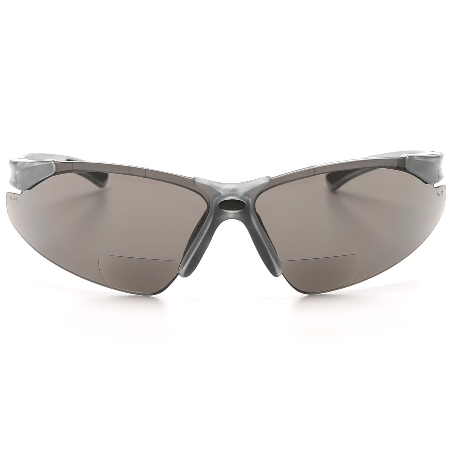 - Distortion-free, scratch-resistant, tinted polycarbonate lenses plus transparent gray polycarbonate frame