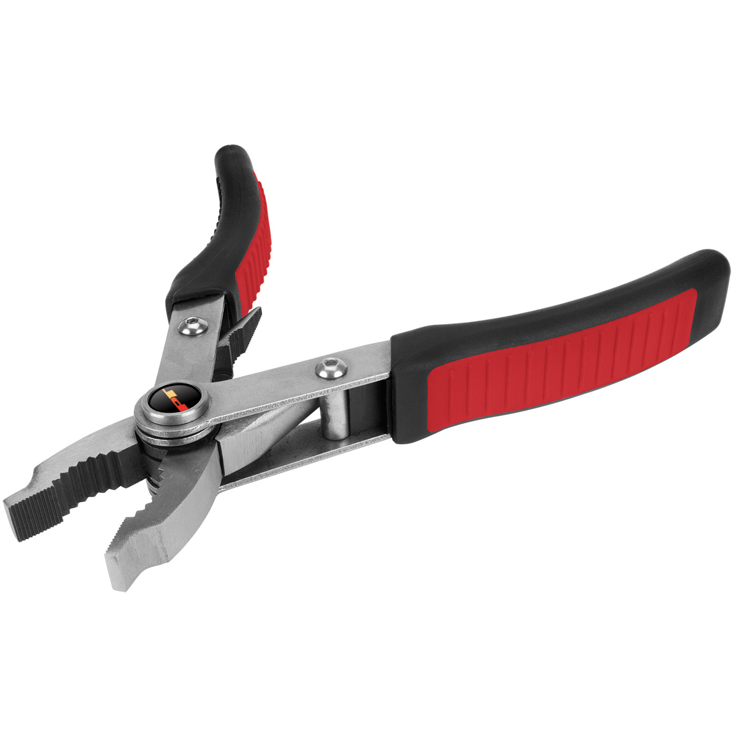 A smart way to free up space in your tool bag without sacrificing a pinch of function. With a simple flip of the handle, the 2-in-1 Dual Jaw Quick Pliers switch from long nose to flat and curved gripping pliers. What’s more, they’re equipped to cut and strip wire, so you can tackle more jobs on that endless to-do list without swapping tools. The molded grips are easy on your hands and the chrome vanadium construction is built to withstand that iron grip of yours.