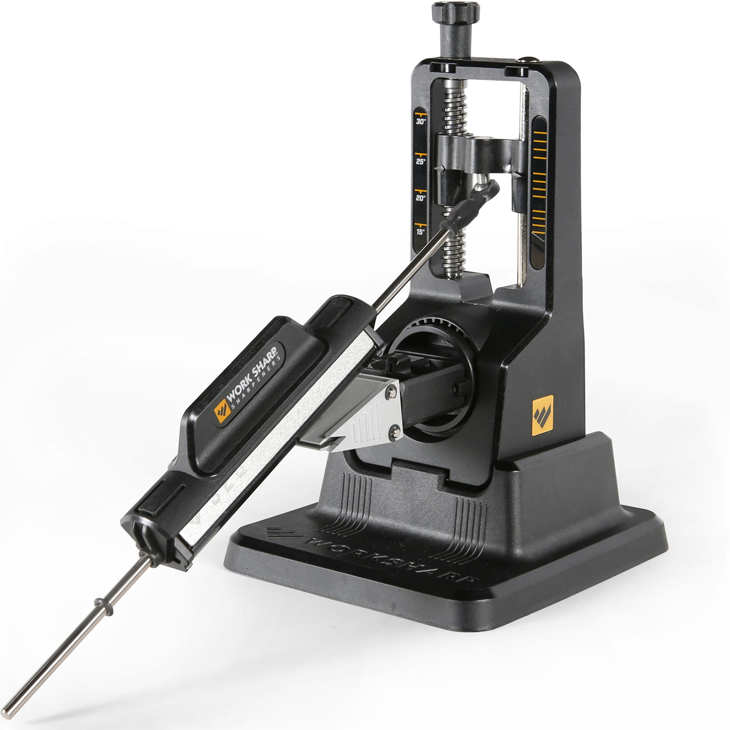 The fastest, surest way we’ve found to put an incredibly keen edge on every knife in your arsenal. Simply use the innovative clamp system to secure your knife to the stable platform. Easily adjust your sharpening angle from 15° to 30° in precise 1° increments to get the grind precisely right. (Hint: Snap a quick picture of your blade setup in the clamp to easily replicate the angle and clamp position for future sharpening sessions.) The 3-sided Tri-Brasive® rod includes course 320 and 600 grit diamond plates to speedily restore a sharp edge, plus a fine grit ceramic stone to hone blades to whisker-shaving sharpness. Designed, tested and assembled in Ashland, Oregon, the sharpener has a sleek, scientific design that’ll look impressive on your workbench.