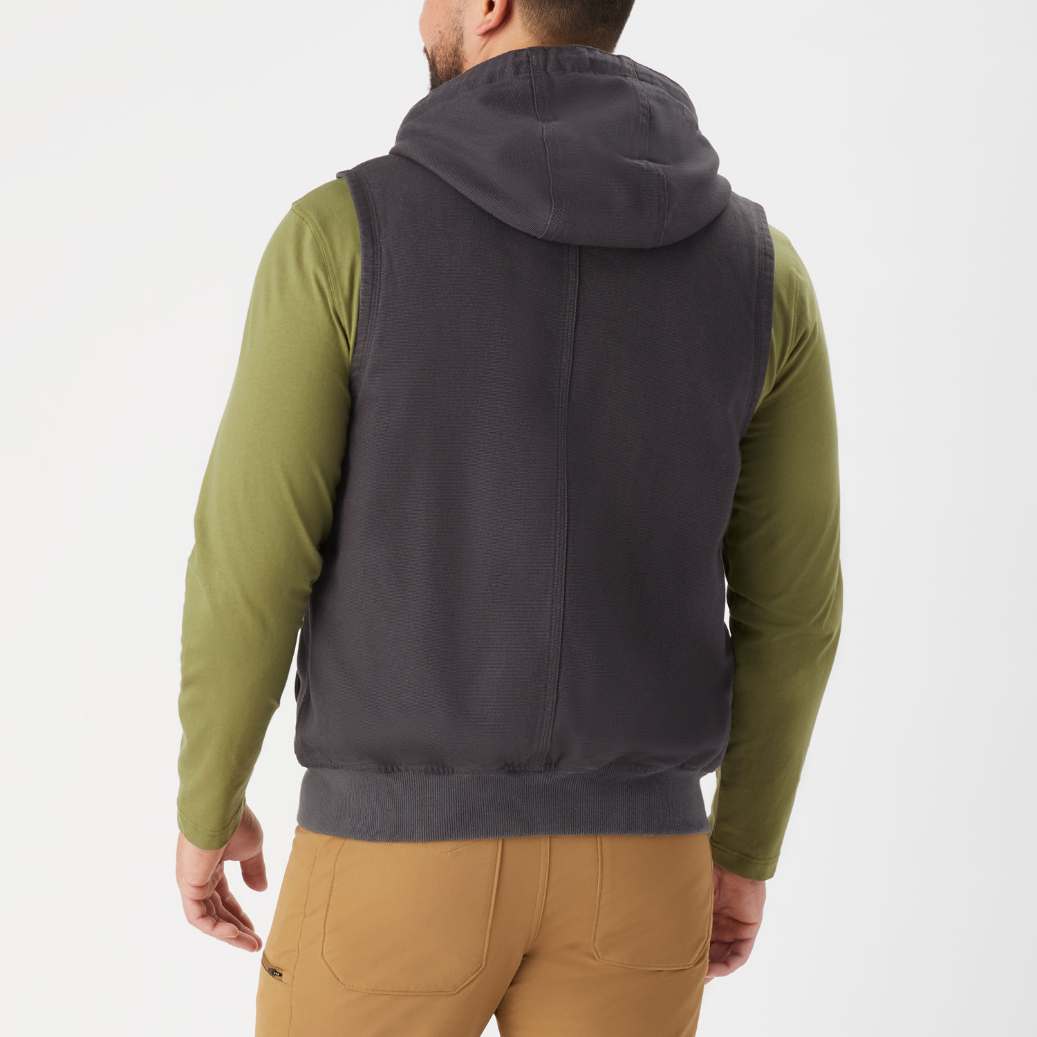 - Restriction-free rib-knit bottom hem keeps warmth in, ugly weather out