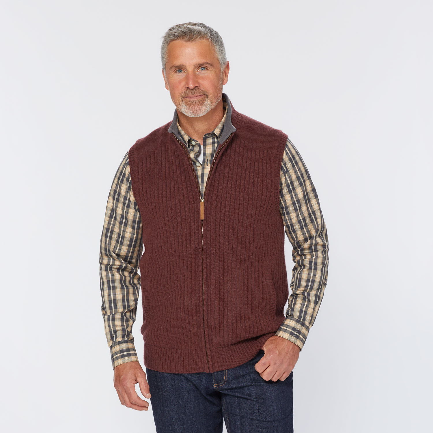 • Men's Shetland Wool Windproof Full-Zip Sweater Vest