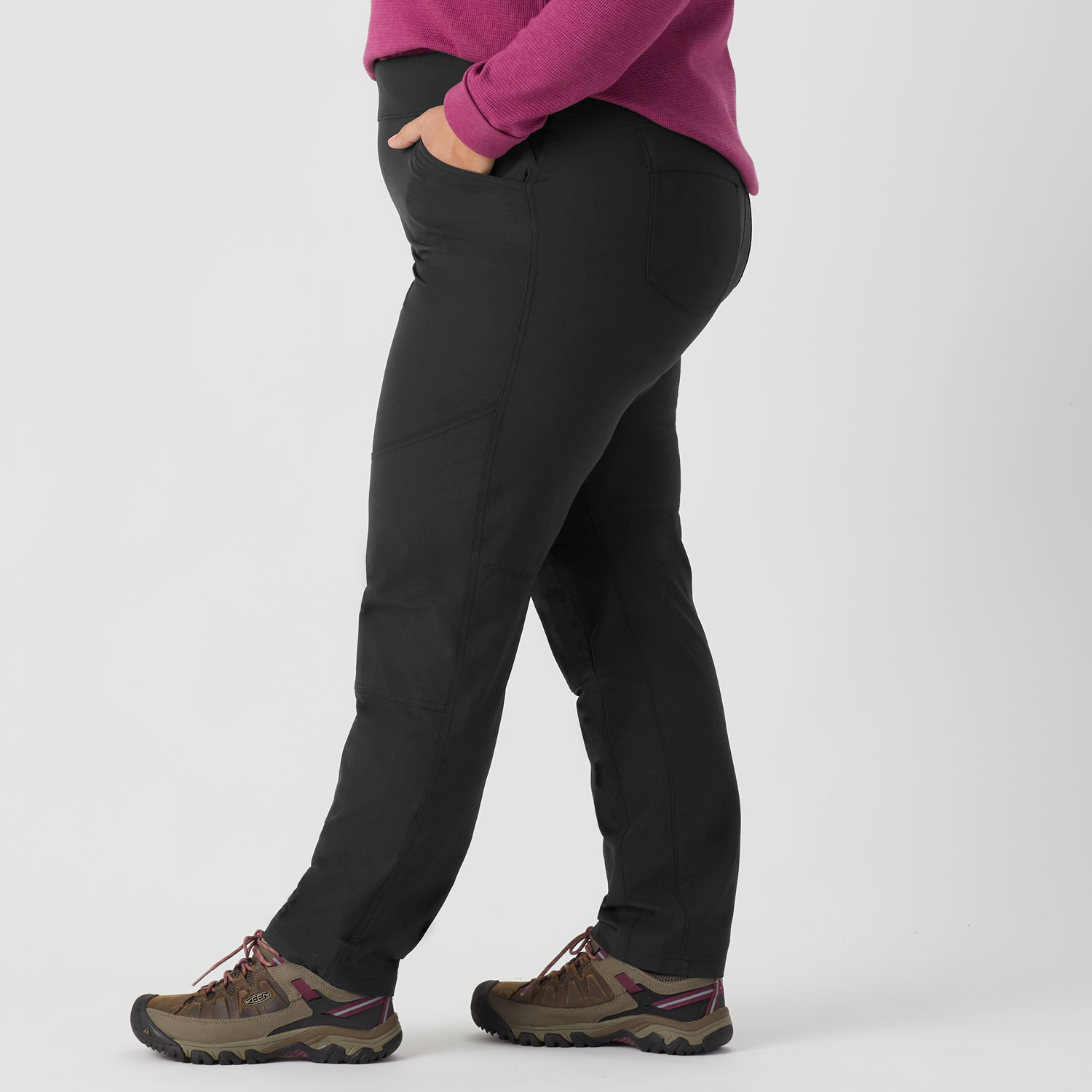 - Pull-on styling for ease and comfort – no button or zipper to dig in as you bend