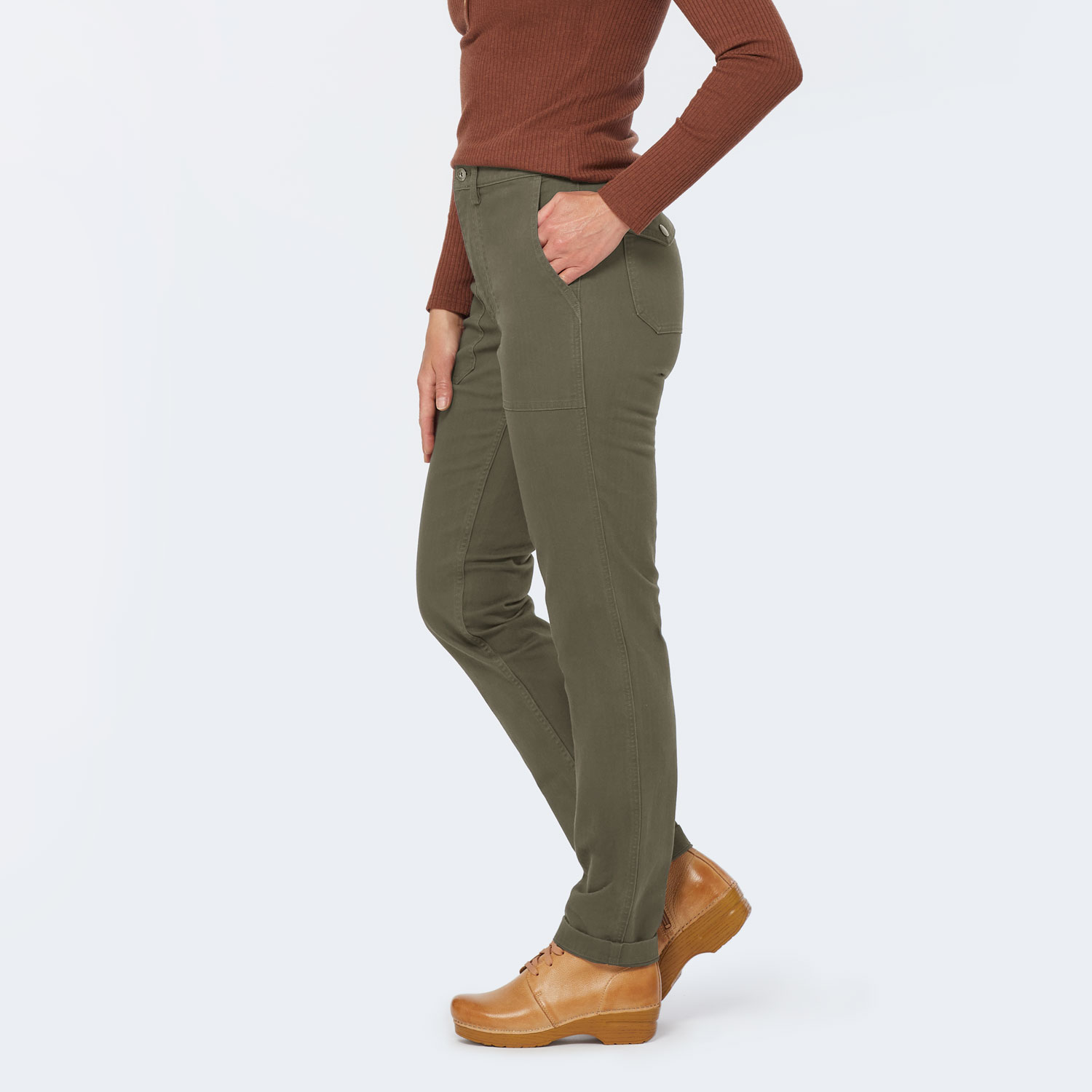 Duluth Reserve Slim Leg Pants feature clean lines in a slim, striking silhouette, so you’ll always look pressed and polished. Soft cotton/spandex fabric in a herringbone weave puts a fresh, stretchy spin on vintage fatigues, while a comfort waistband features hidden elastic that maneuvers with you – no matter the mission. Plus, they’re packed with a small army of pockets cut deep and wide – just the thing for stowing gum, phone and pokey tools too.