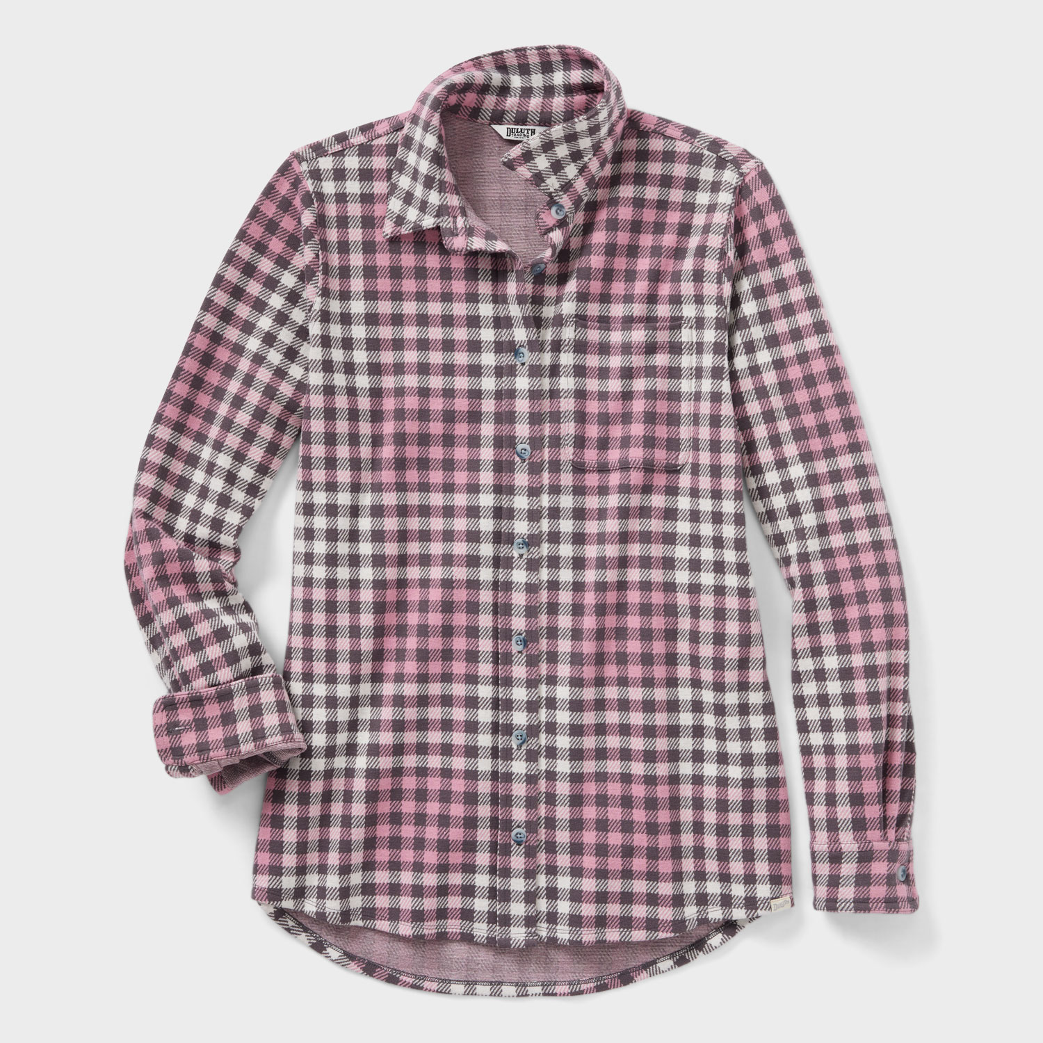 It’s hard to imagine a fabric more comfortable than classic flannel – but by gum, we’ve done it! Soft knit t-shirt fabric looks just like woven flannel, in traditional plaid that’s brushed to perfection. The T-Shirt Flannel Long Sleeve Shirt’s stretchy construction hugs your curves in all the right places and allows for a freedom of movement just not found in woven fabrics. Stash a pen or ID card in the chest pocket and tackle the day in a knit that takes fuzzy flannel comfort to a whole new level!