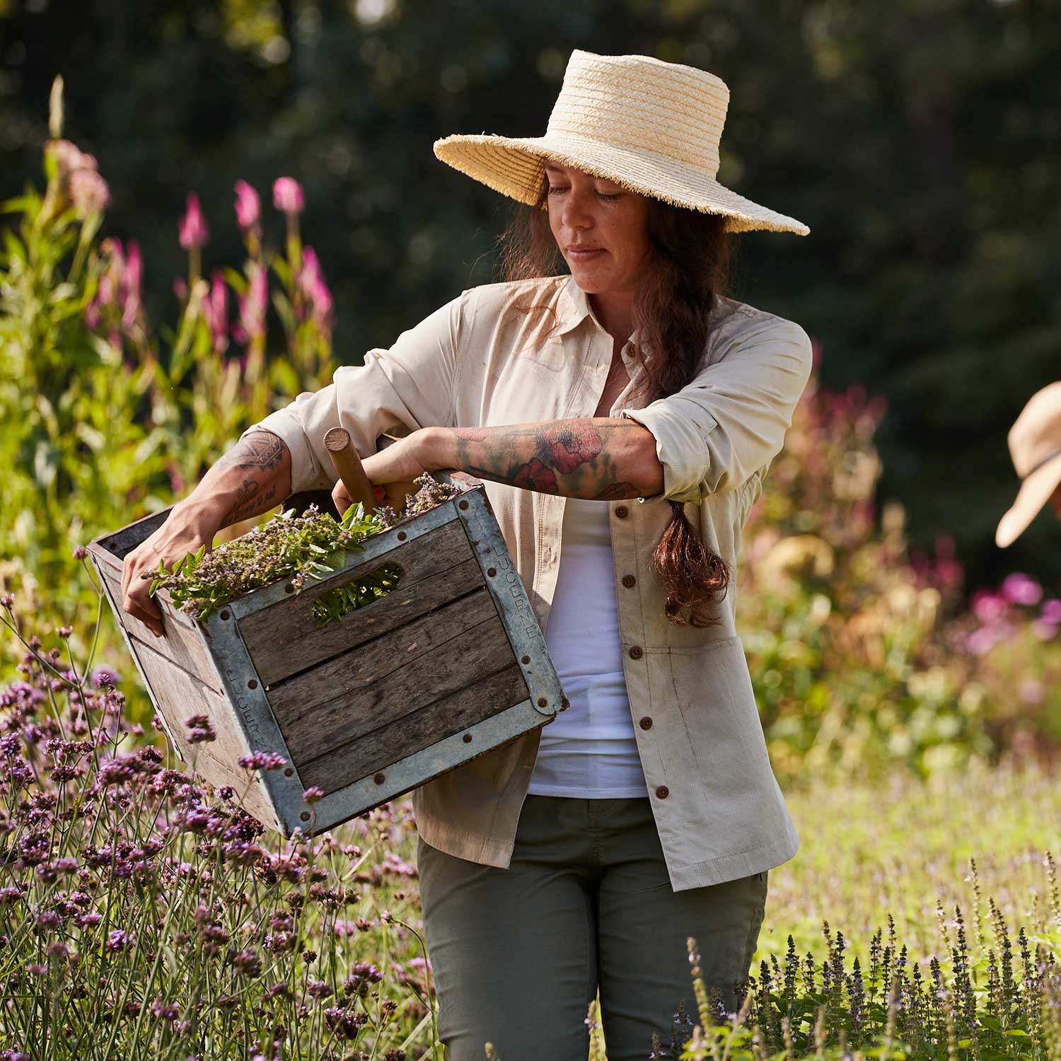 - Extra-large front and back pockets stow your garden tools and seed packets