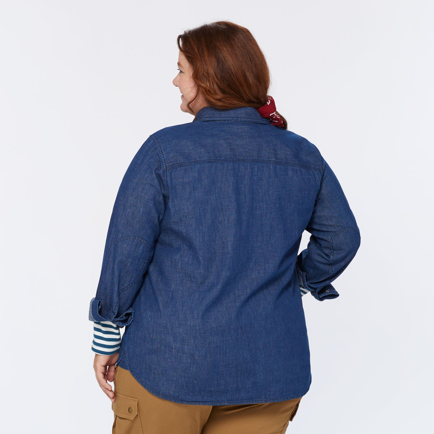 This Denim Shirt is made from soft, broken-in cotton that’s durable yet oh-so-comfy. Cut with feminine seaming and reinforced with triple stitching and elbow patches, it’s just as tough as it is fetching. And then of course we’ve gone and added all those Duluth-y details you’ve come to expect – like Reach Gussets® for unfettered freedom of movement, triple-needle stitching and a built-in Shirttail Shammy® to shine screens and specs. Layer it over a tank, under your favorite sweater or by its lonesome. This Denim Shirt’s right at home whether you’re pulling barn duty or tearin’ it up at the local watering hole.