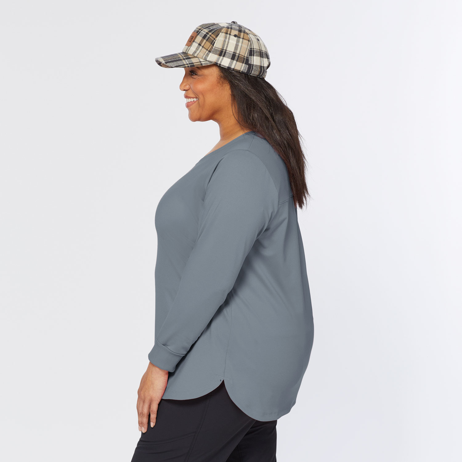 Looking for a top that gives a few inches but always goes the extra mile? Look no further than the Lightweight NoGA® Long Sleeve Shirt: designed to match our bestselling NoGA pants, but it’ll look great with your favorite pair of jeans, too! Ribbed piecing at the neckline, cuffs and back yoke lend enhanced recovery – no sagging or bagging out after a few washes. The flattering cut features a slight A-line that breezes over your curves, while a wicking finish whisks moisture off your skin to keep you fresh and dry no matter the activity. And of course there are the Reach Gussets® to give you room to climb and stretch with abandon. Sweat it out at the gym or tackle your to-dos in complete comfort with the Lightweight NoGA Long Sleeve Shirt!