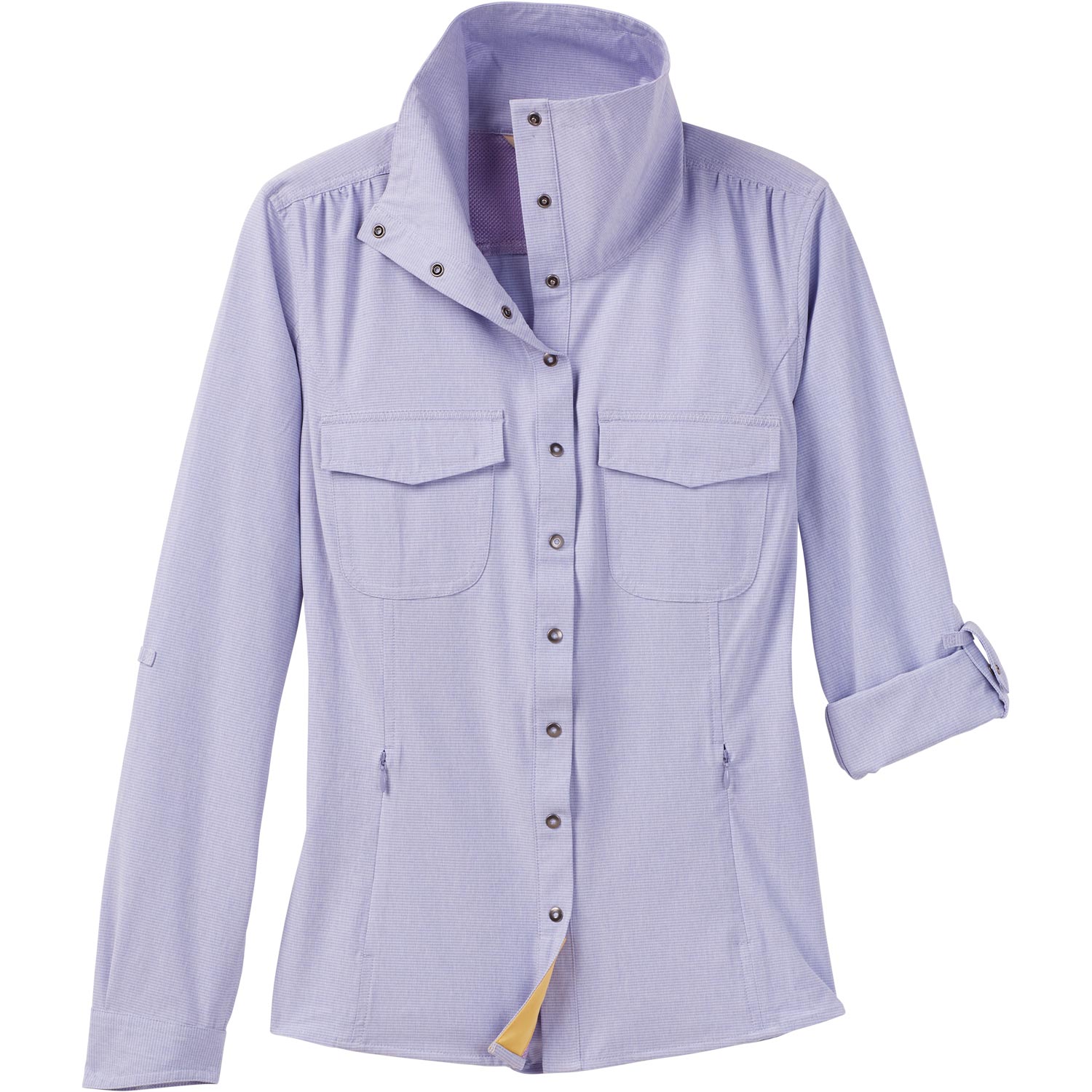 - Snap tabs secure rolled-up sleeves