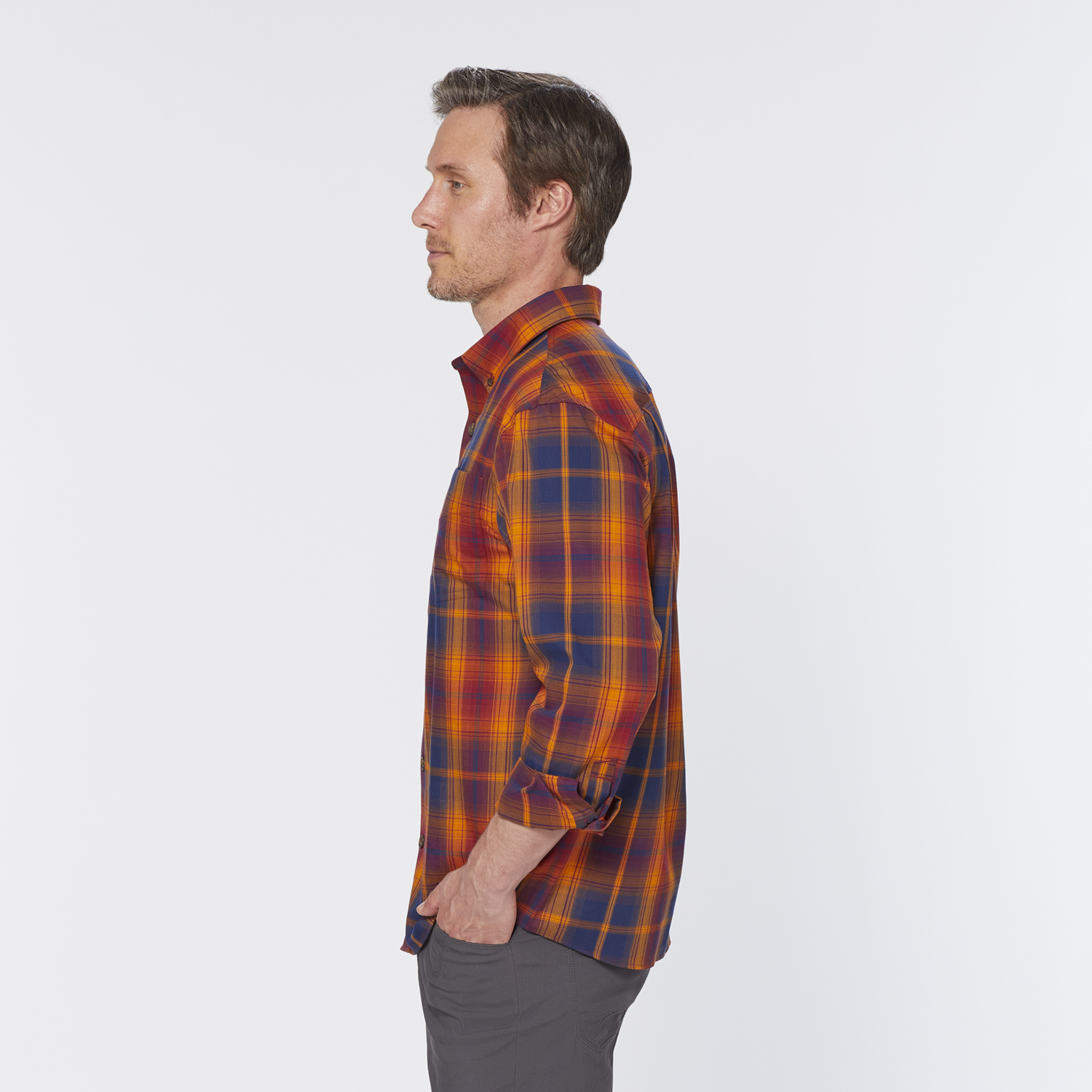 - Chest pocket with a hidden sleeve for stashing a pen or pencil