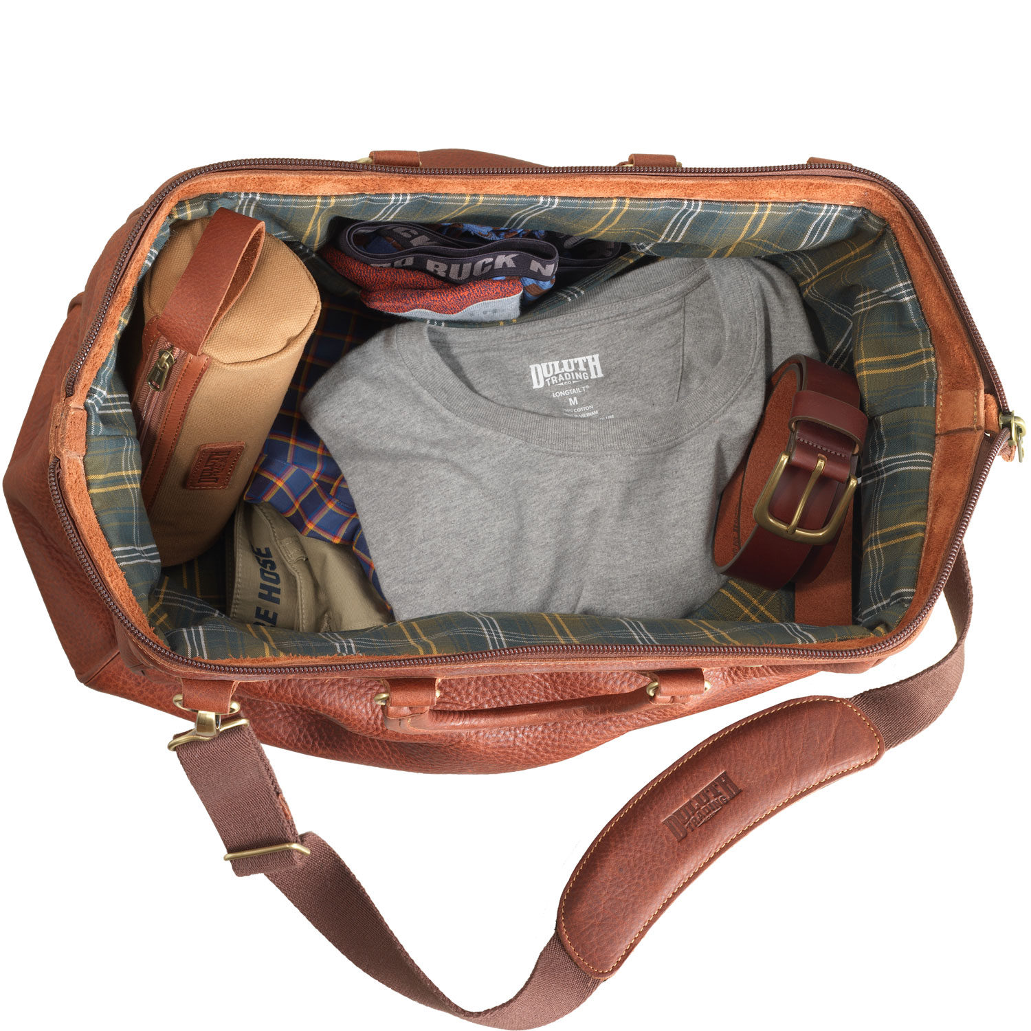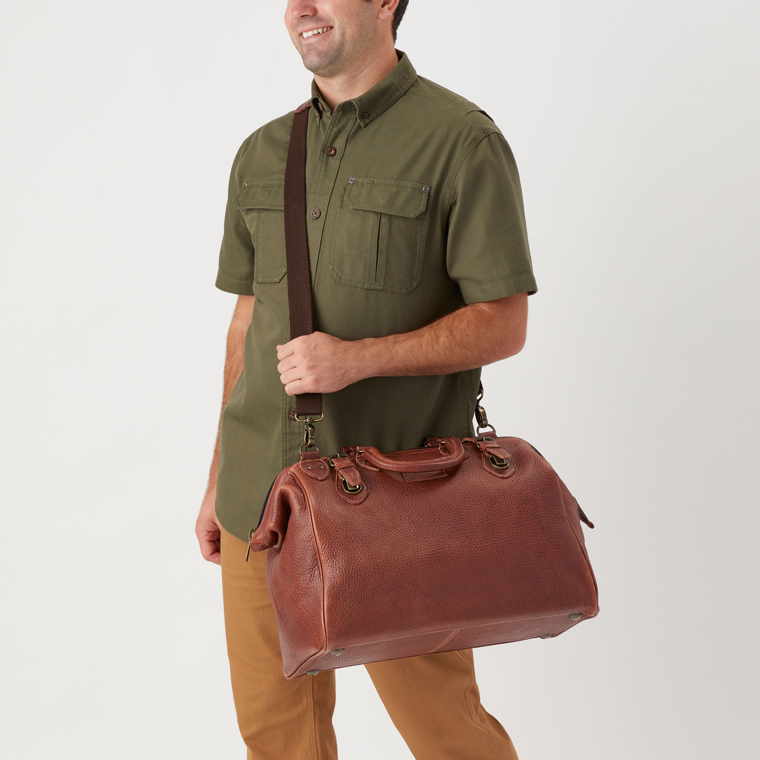 - Upgraded antique brass hardware, including easy-to-operate slide buckles and heavy-duty zipper