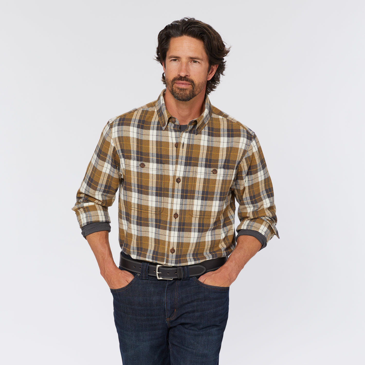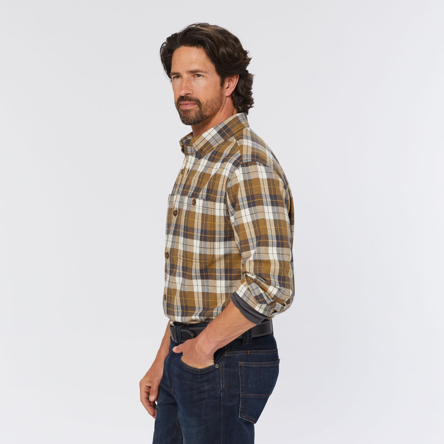 What in the world has happened to men’s flannel shirts? It’s like a good classic flannel shirt is an endangered species! So we went to work. Our 100% cotton Free Swingin’ Plaid Flannel is a hearty 5.6 oz. for durable wear and extra comfort. We brush it twice for extra loft and softness, and give it a prewash, so it resists shrinkage. It has deep back pleats and free-moving Reach Gussets® so you can bust axe with Free Swingin’ ease. A button-down collar means you can wear it under a sport jacket (which guys in Duluth actually do – some of them even get married in flannel!)