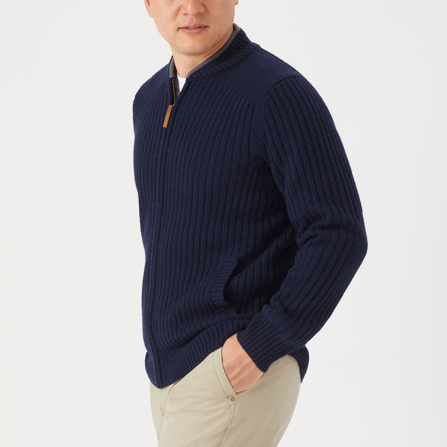 - Bold 3x2 rib knit with contrasting texture at the shoulders and elbows – classy!