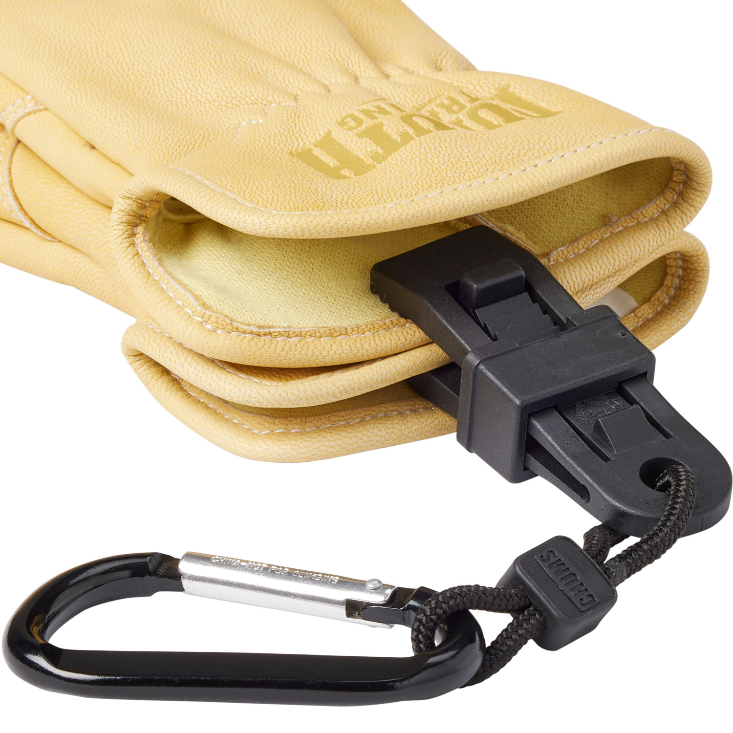- Attaches gloves securely to your person, tool belt, tackle box, duffle or anywhere you need a pair