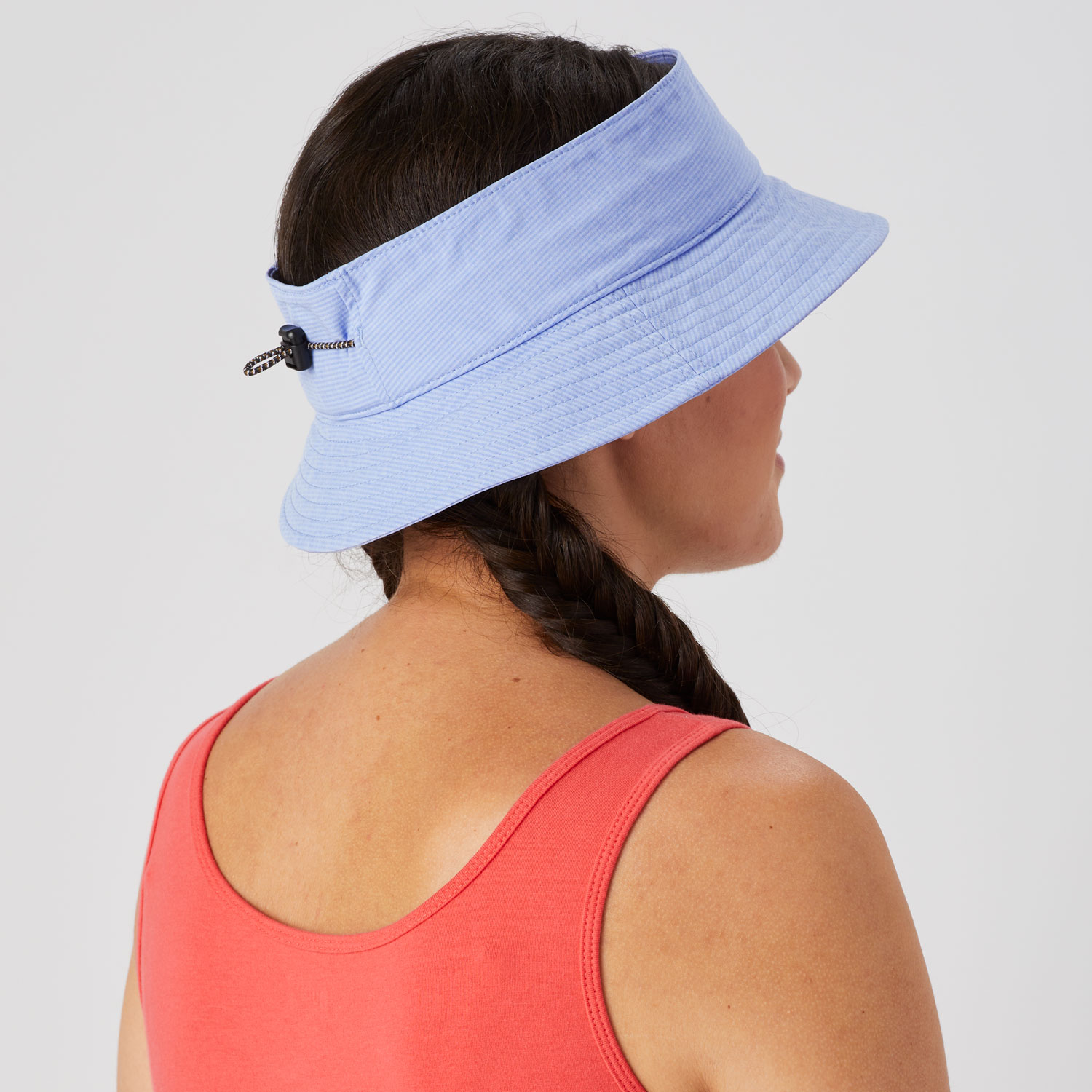 Get the coverage of a bucket hat, but room to breathe! Introducing the Sol Survivor Visor Bucket Hat. The open top allows for a ponytail or extra ventilation, while the wicking sweatband keeps you cool and dry. Adjustable streamlined back with bungee cinches for a custom fit. Crafted from Sol Survivor fabric with UPF 50+ sun protection, this hat shields you from searing rays and looks good while doing it.