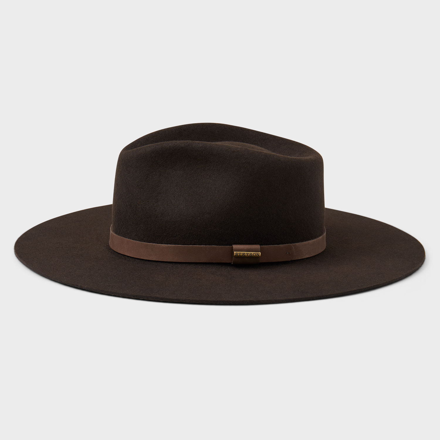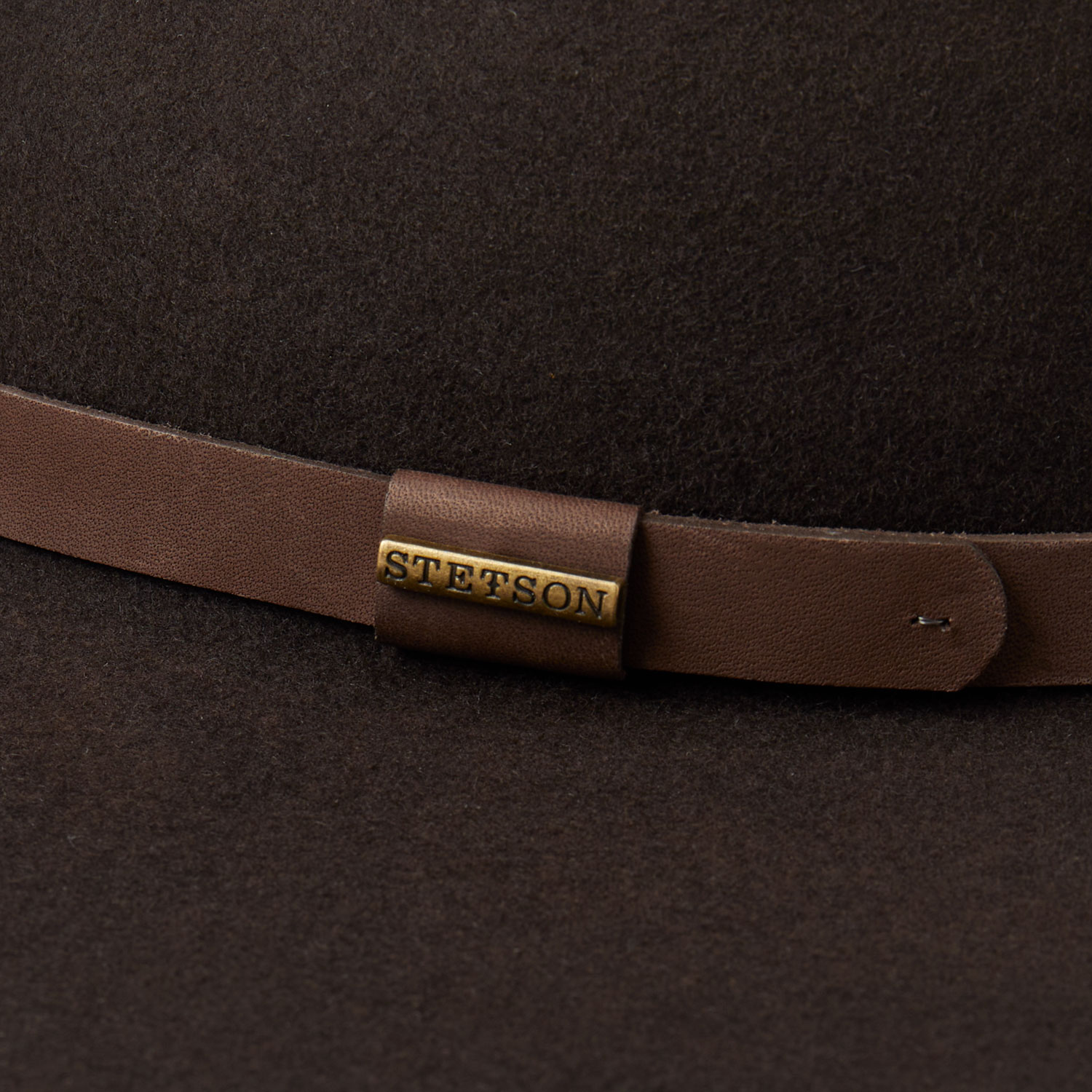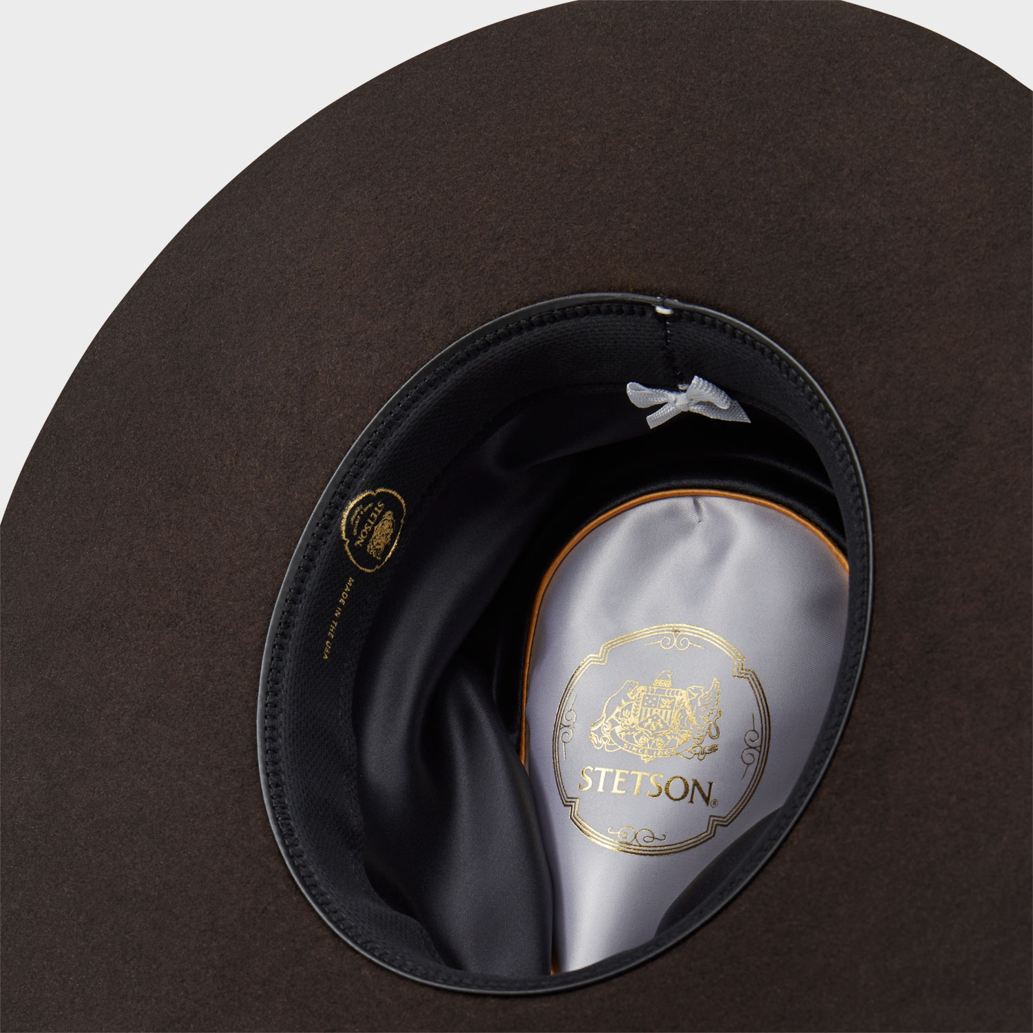 Named for a breathtaking valley at the foot of Montana’s Bitterroot Range, this timeless Stetson® hat stays true to its Wild West DNA. Crafted right here in the USA of ruggedly handsome felted wool, it will work for you just as it has for generations of cowboys — a stoic and enduring tool as essential as saddle and bridle. The wide, flat brim shields the eyes from sun and helps block trail dust. An interior leather sweatband keeps the hat comfortably secure on windswept plains. Outside is a simple leather hatband, while a gold-foil print inside the crown leaves no doubt that this is a genuine Stetson.