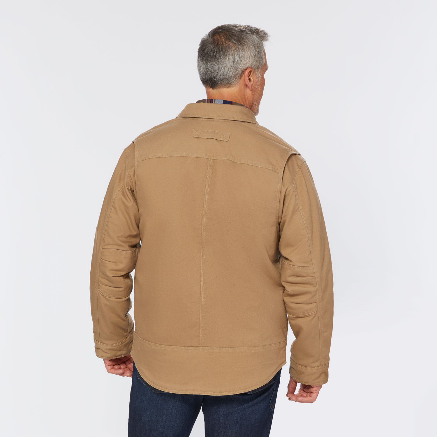 Our Fire Hose® canvas jackets have earned legendary status among working men for their never-say-die durability. But now there’s an even more rugged jacket on the jobsite. It’s made of DuluthFlex® Fire Hose® HD – a high-tech wonder fabric that withstands abrasion 4X better than tried-and-true cotton work canvas. Better yet, it has more than double the tensile strength and rip resistance of highly durable original DuluthFlex Fire Hose fabric. Yet for all its ruggedness, DuluthFlex Fire Hose HD is remarkably wearable thanks to the work-friendly 10-oz. weight and built-in stretch. A cushy sherpa lining keeps you warm when the mercury tumbles. The bi-swing back, articulated elbows and Reach Gussets® give you the freedom to grapple with big jobs. And 6 pockets give you ample storage for phone, pencils, gloves, notepad and much more. Order up yours today and tear through your punch list, not your jacket.