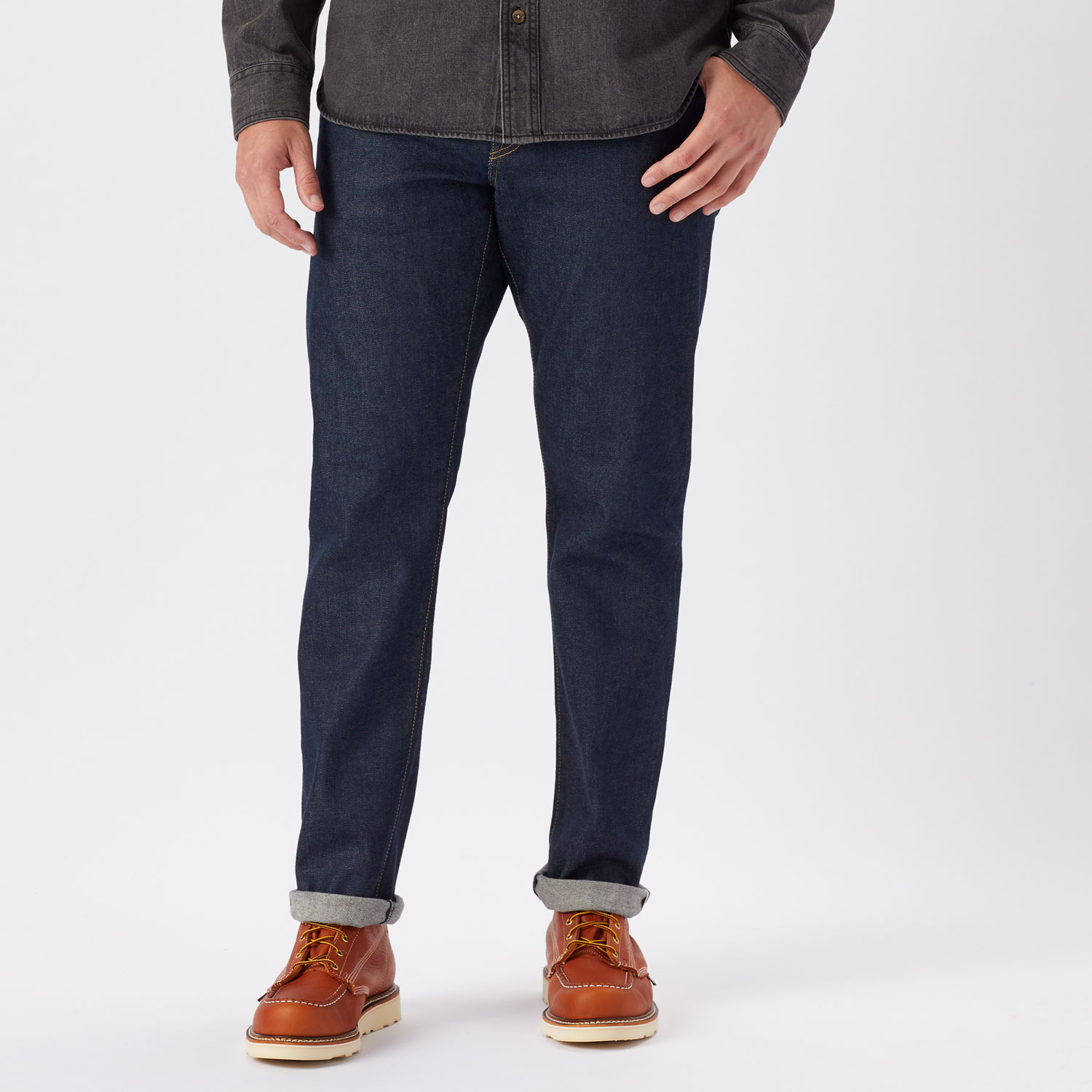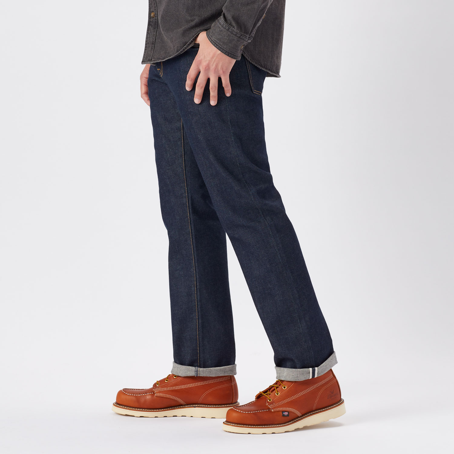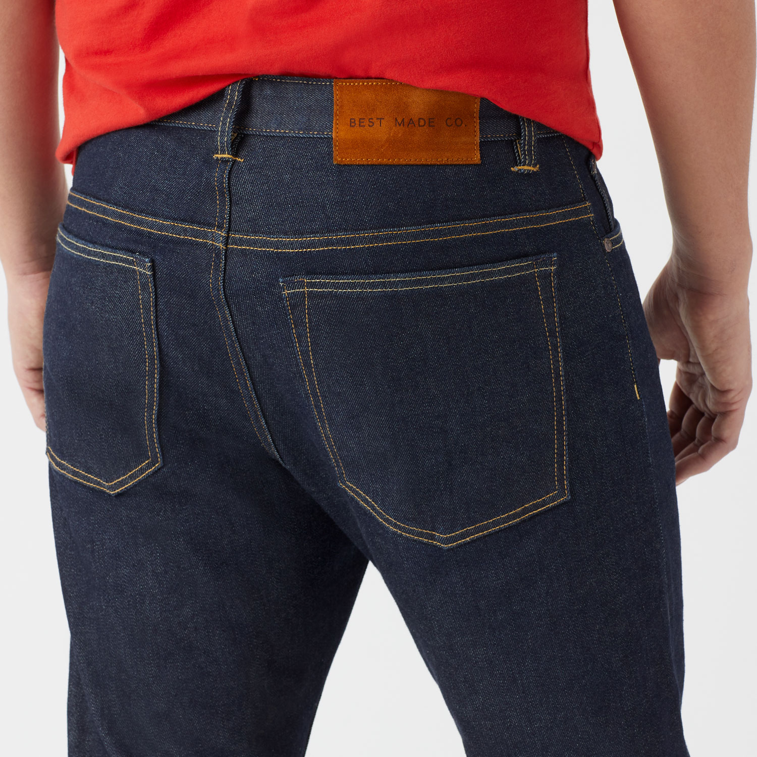 - 13.25-oz. 98% cotton, 2% spandex Japanese selvedge stretch denim