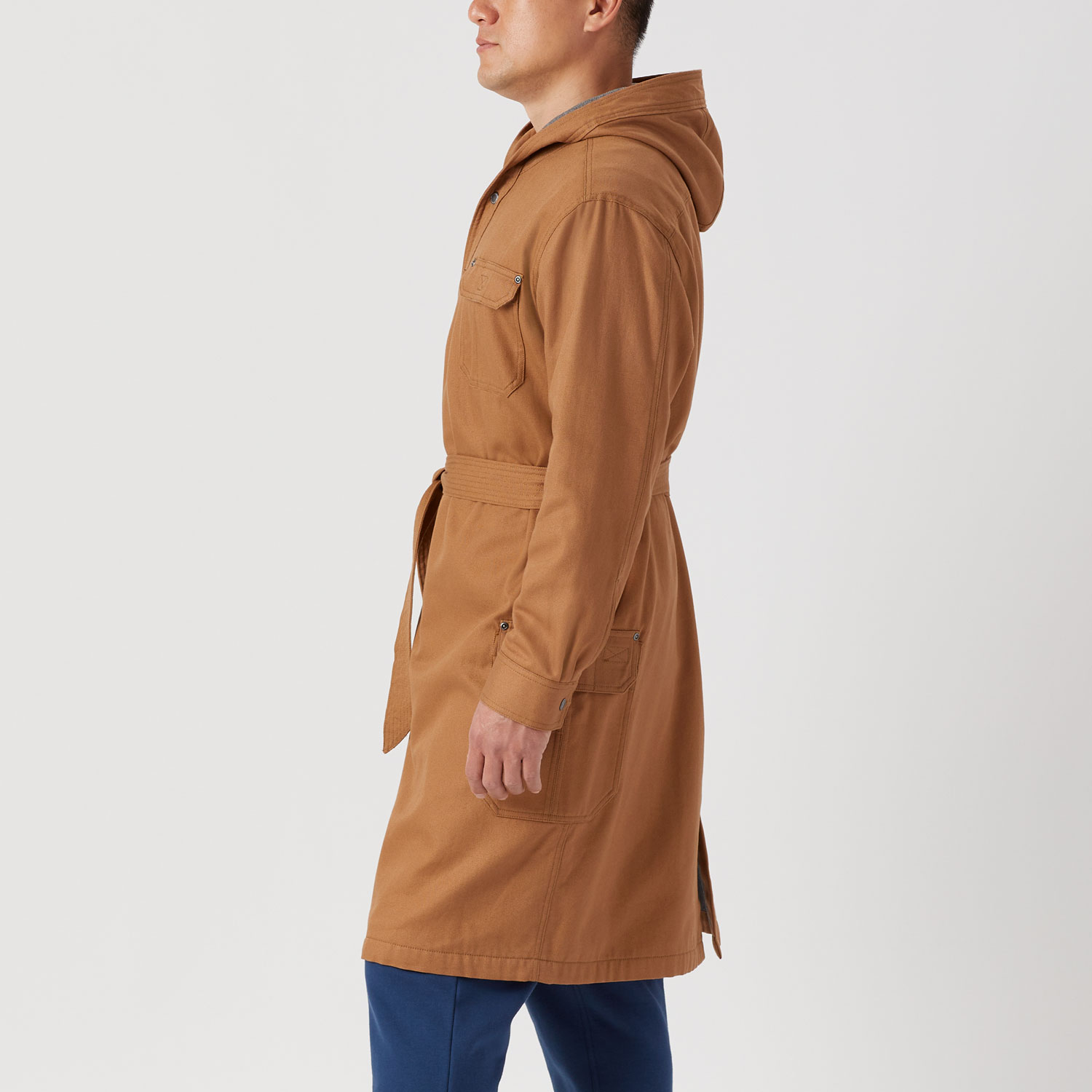 - Hood with snap closure, adjustable belt, adjustable snap cuffs