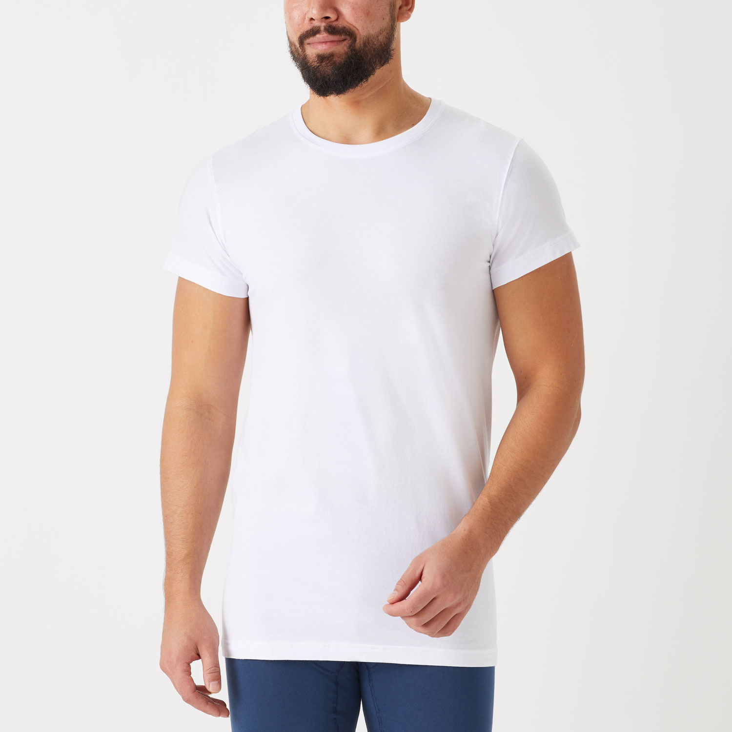 - Longer in the body than conventional tees to keep your keister covered when you bend