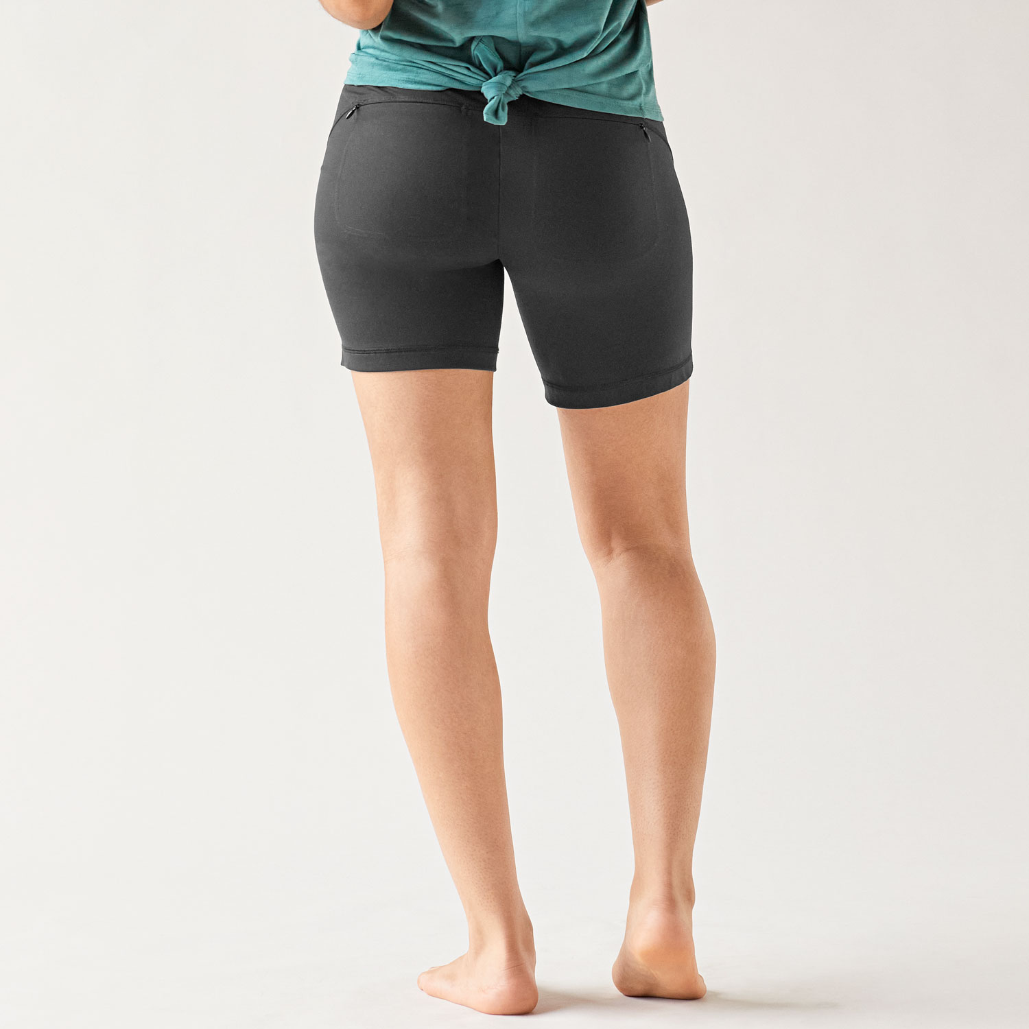- 2 no-bulk pockets – a hidden pouch in the waistband, and zippered pocket behind the right thigh