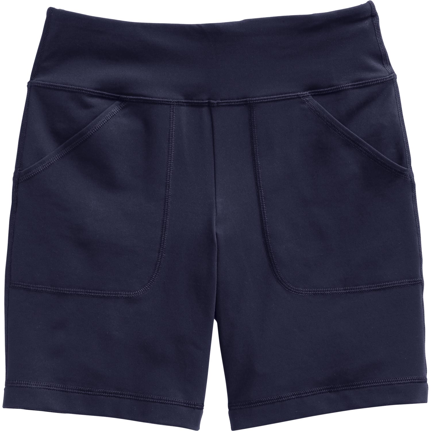 - 3"-wide waistband downplays a belly; mid rise