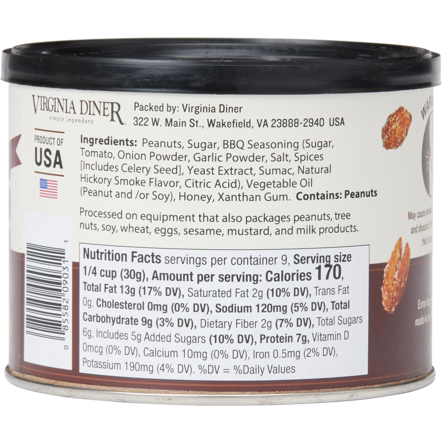 - Extra-large Virginia peanuts pack a crunchy honey-BBQ punch