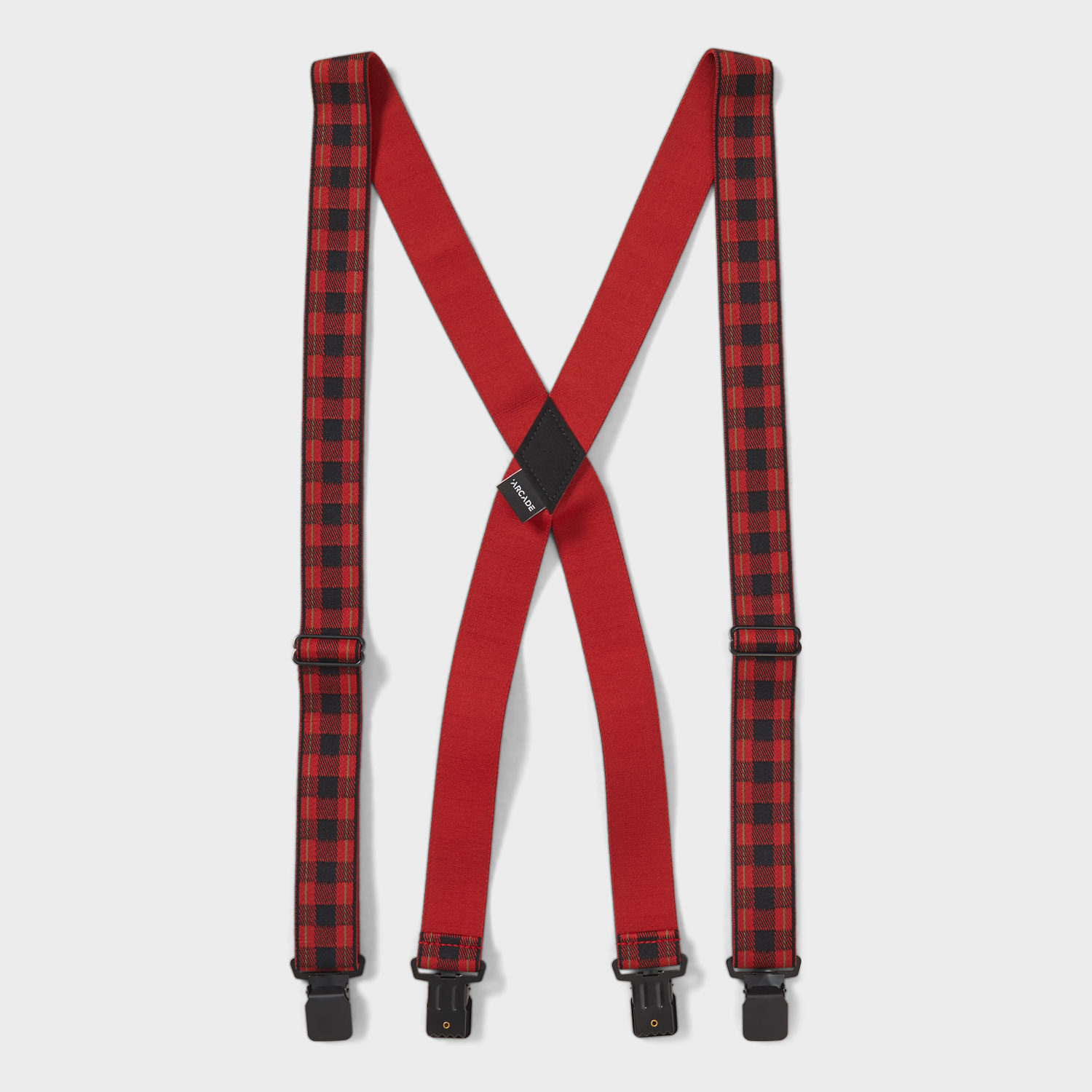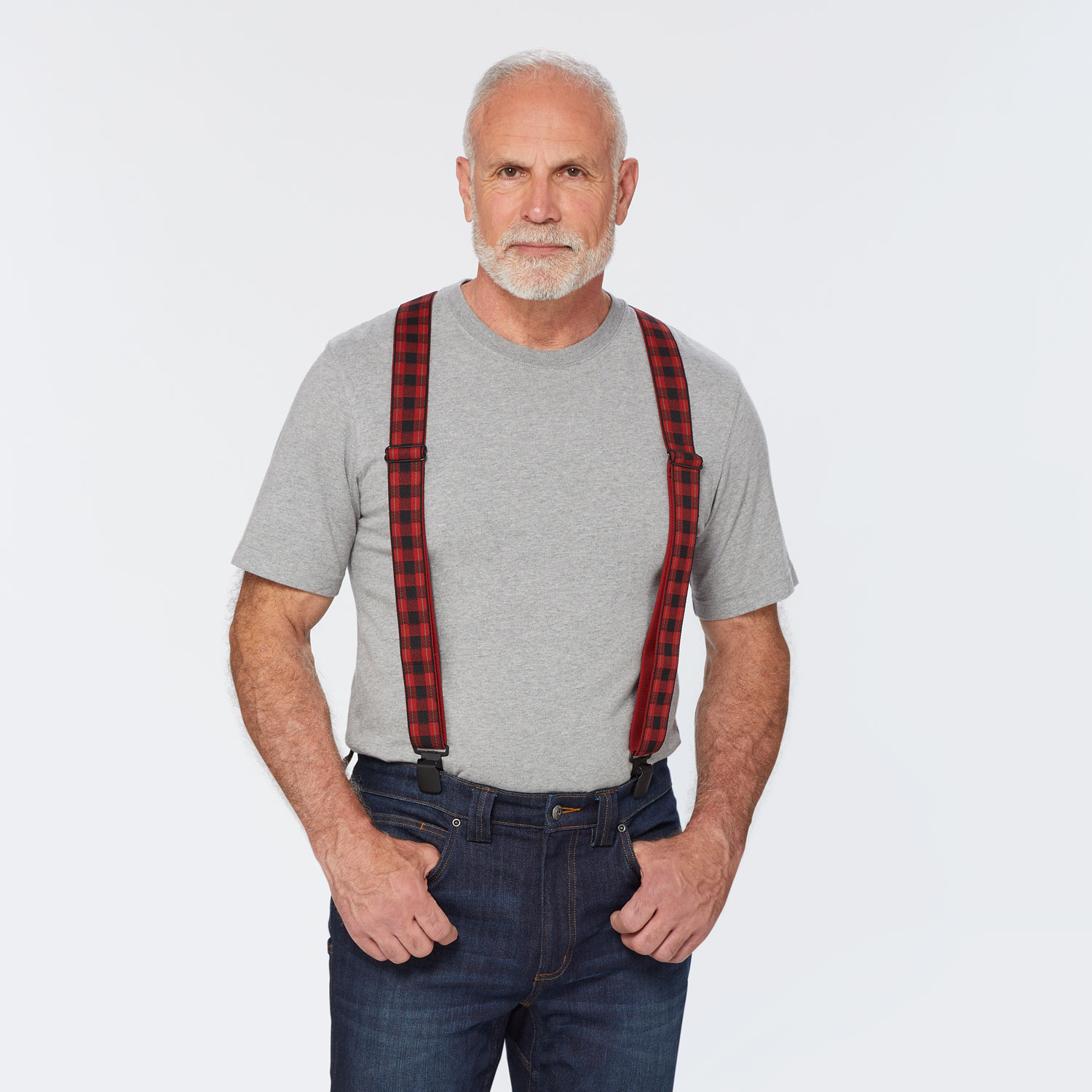 Most suspenders have all the support of soggy noodles. Not these. They’re as strong and resilient as the lumberjacks who wore this bold buffalo check as they felled towering timber with nothing more than an axe and broadsaw. The heavy-duty webbing can hold up rugged work pants without sagging, yet built-in flex lets you swing an axe in total freedom. Brawny metal hardware holds tight to tough fabrics and the sliders stay put after you adjust your suspenders to your liking. Timber!
