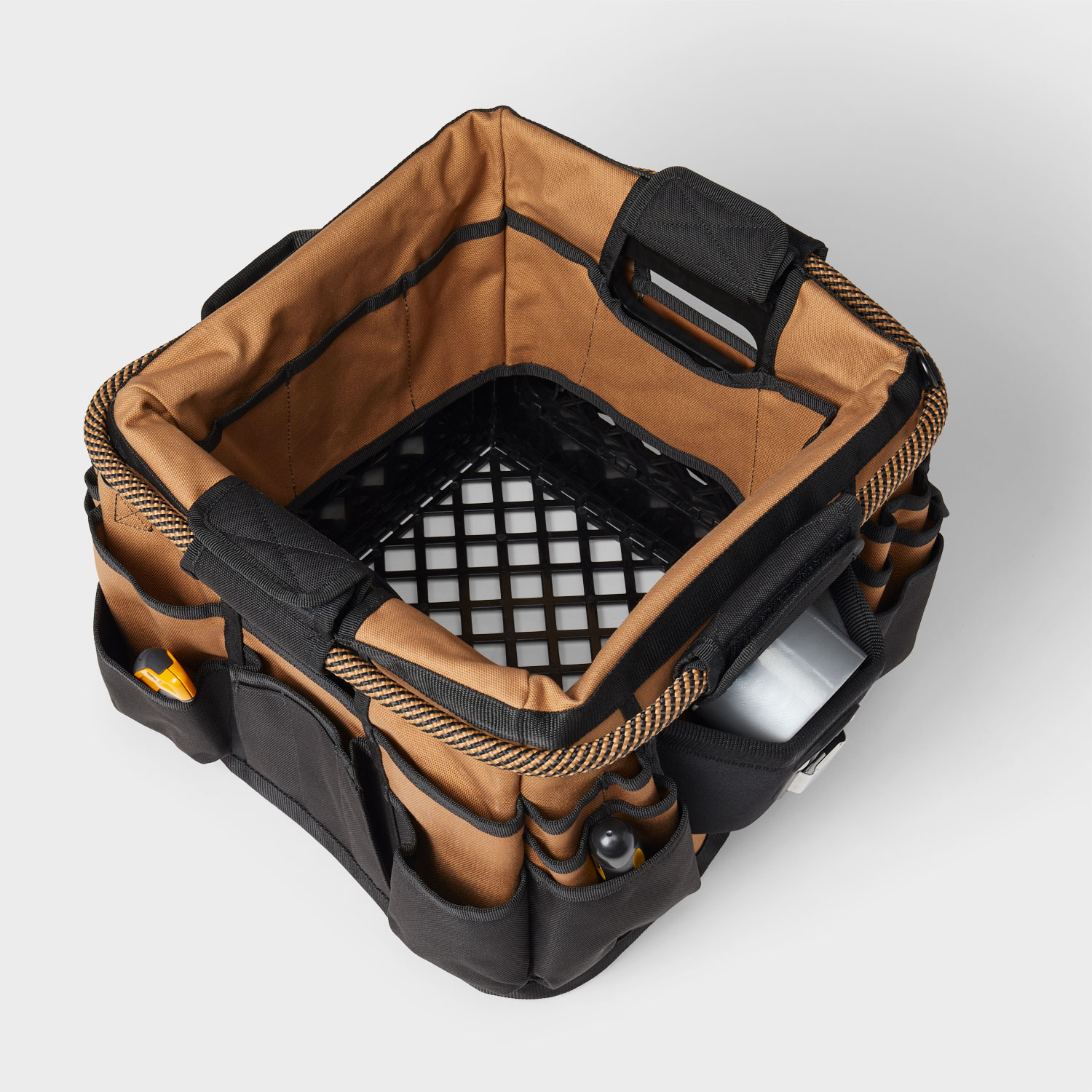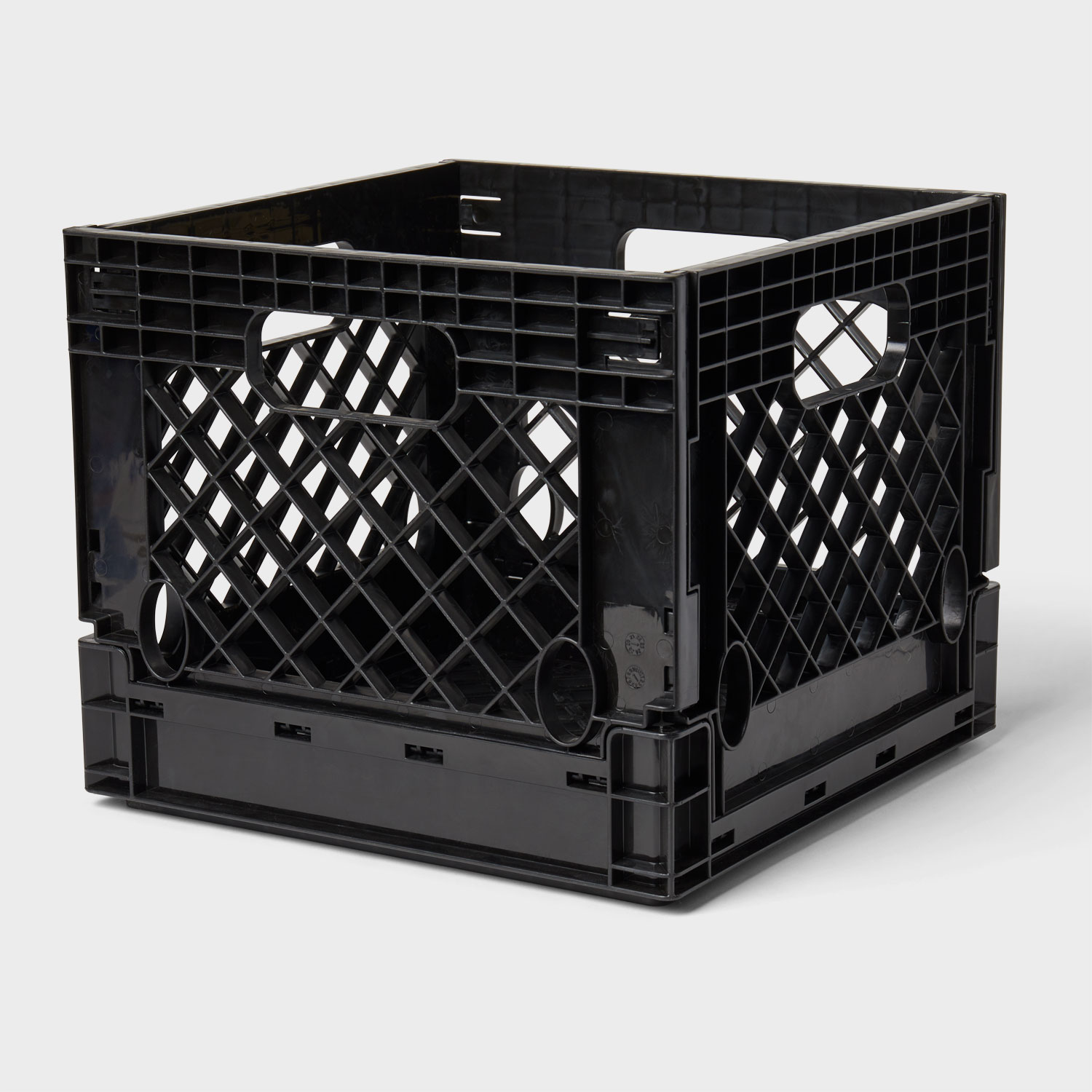 This field-deployable folding crate is just as sturdy and useful as the trusty milk crate it’s modeled after, but folds flat and snaps back to attention when duty calls. Because, if there’s any downside at all to the sturdy, time-tested milk crate, it’s that there’s nothing to do but stack them up when not in use – taking up a lot of space. Sides lock securely together when needed. Sturdy polypropylene construction is much stronger than the cheap plastic versions found in discount stores. Sized to carry 4 gallons of milk, equal to 50 lbs. of tools, rope, cords, fasteners or other essential “junk.”